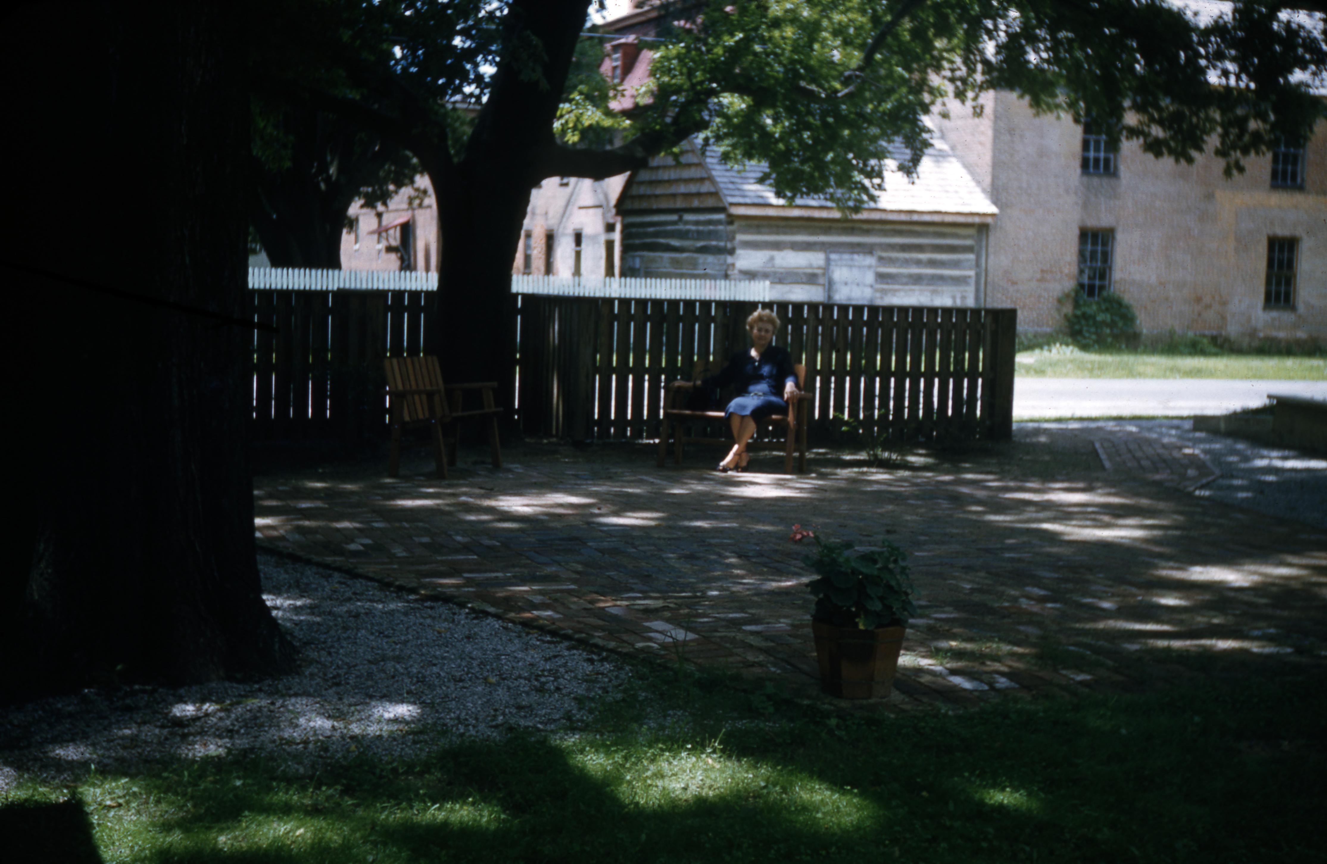 St. Stephen's Episcopal Church: The church was first organized in 1841 and in 1843 the west wing of the old Rappite church was given for use by the Episcopal�s by Alexander and Anne Maclure. At this time the old burial ground was also given to the church, which was bought back by the Rappites in 1846. Then in 1850 the Episcopal�s sold the west wing of the old Rappite Church for $1000 and in 1854 St. Stephen�s Church was constructed, the North Street location where the Lenz House now resides.1888 saw the construction of a new belfry add to the church to accommodate the new bell. In 1911 the new church was built, and an addition was made to it in 1927. The church is still present as of 2022. This photo shows the yard behind the church.