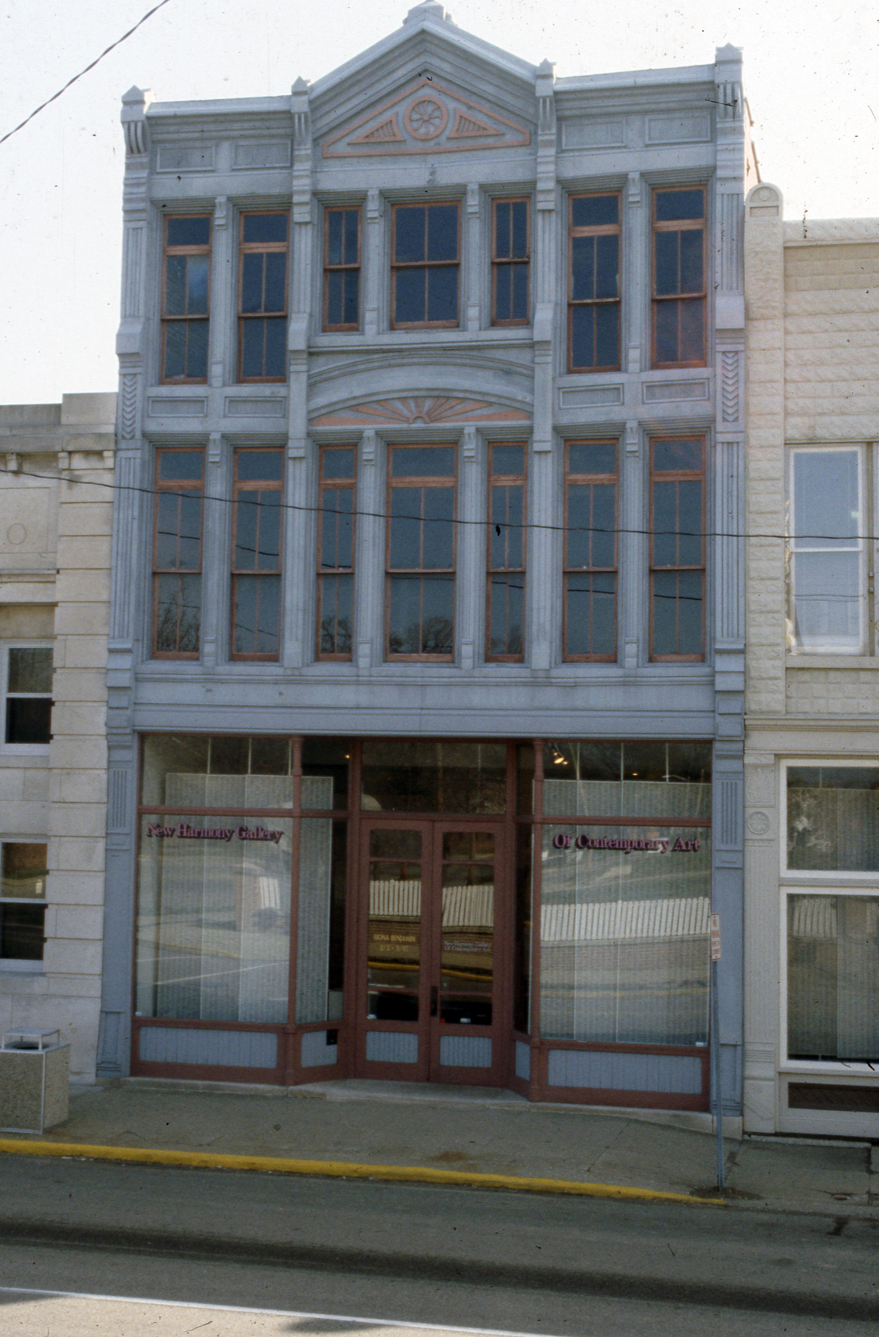 The Owen Building: This building is located at 504 Main Street and was once the right side of 502 Main Street. The two buildings combined have a long history, being built before 1888. They were the location of E. F. Owen and Company�s store, this side being the hardware shop at least until 1907 or later. New Harmony Gallery of Contemporary Art now located in both 504 and 506 Main Street with 506 being used as a sales floor. The art gallery, opened in the fall of 1975, after the building went through refurbishment and is still a part of the University of Southern Indiana today (2021). The gallery is a not-for-profit space for artists to hold exhibitions of their work with a sales floor in the adjoining building at 506 Main. This photo shows the building after the renovations were finished.