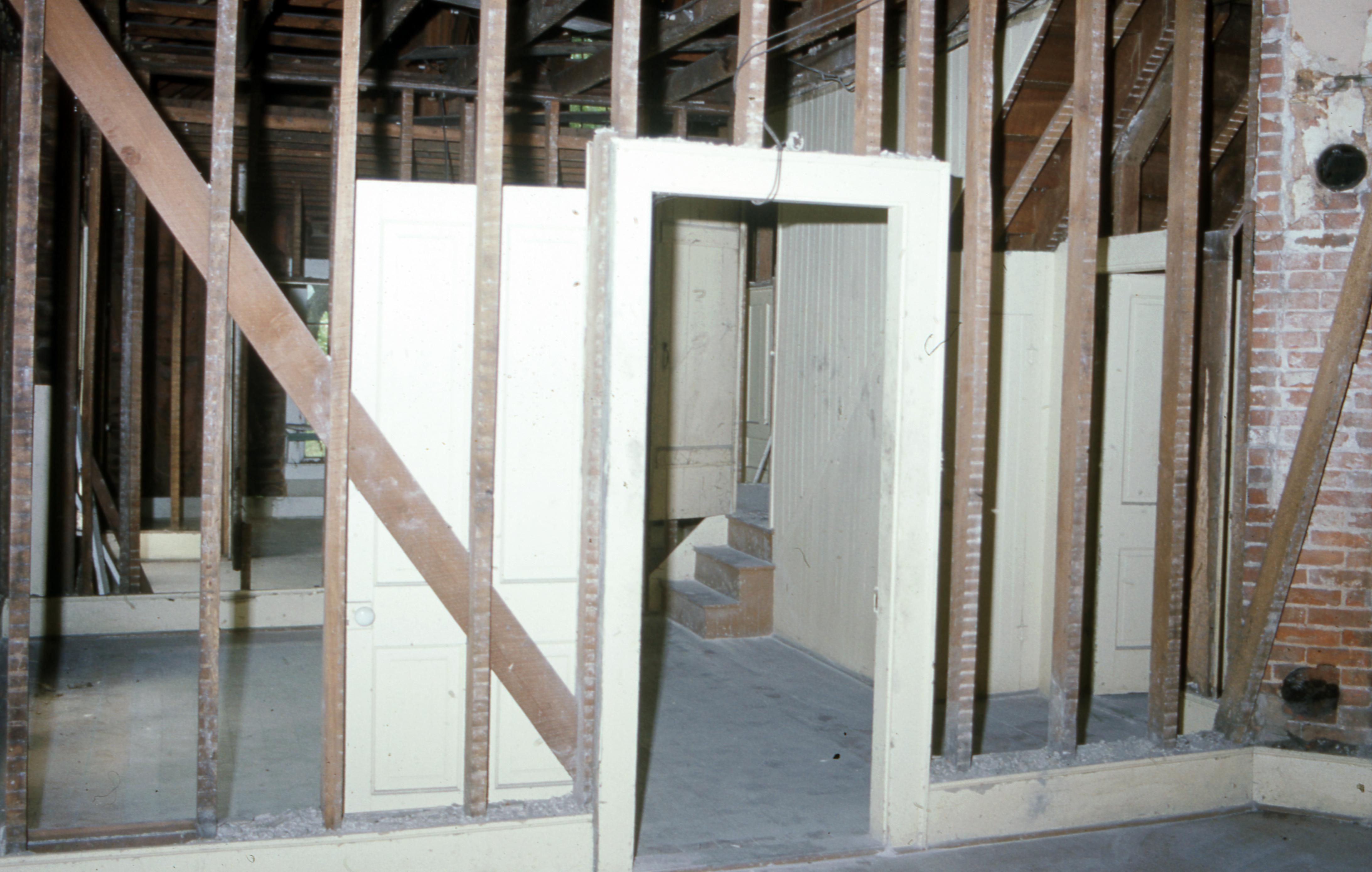 Patterson House: Located at 682 Arthur Street and built in 1850. This is a view of the renovations on the first floor. The stairwell to the second floor can be seen near the bottom center of the photo.