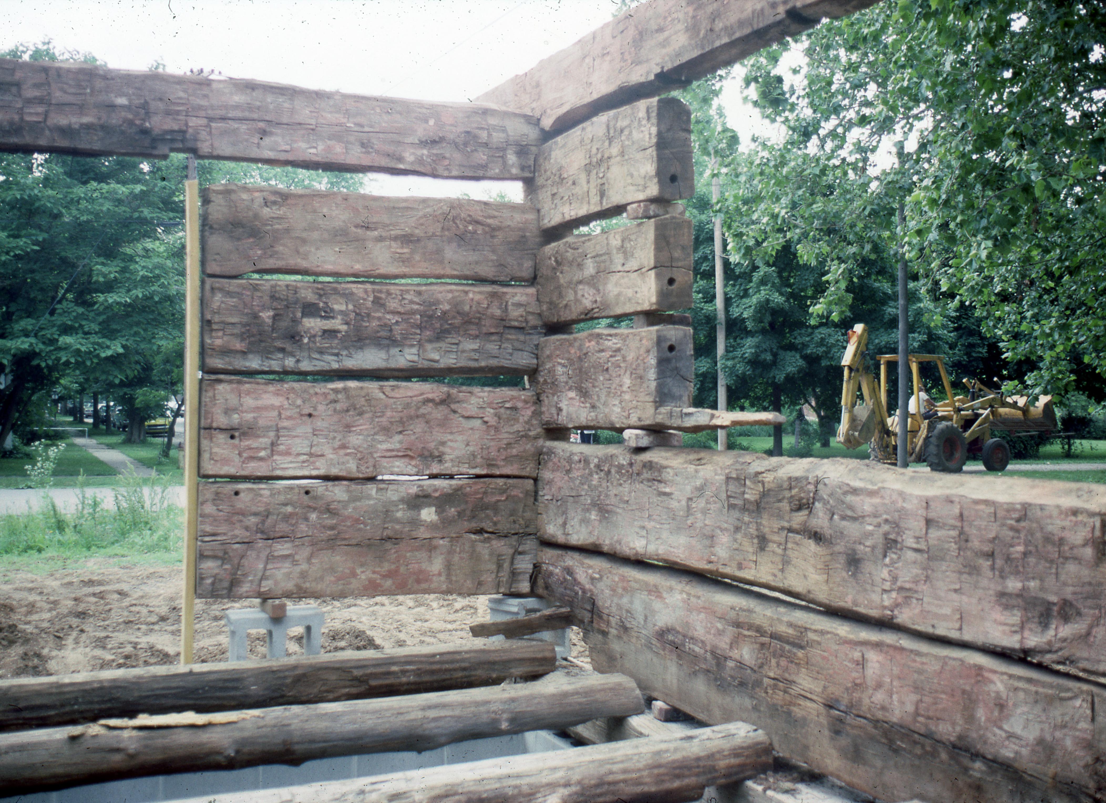 Reconstruction of the West Street Log Cabins at 301 West Street, New Harmony, Indiana. The logs that were used to reconstruct the West Street Log Cabins came from the John Spencer log house in Crossville, Illinois.