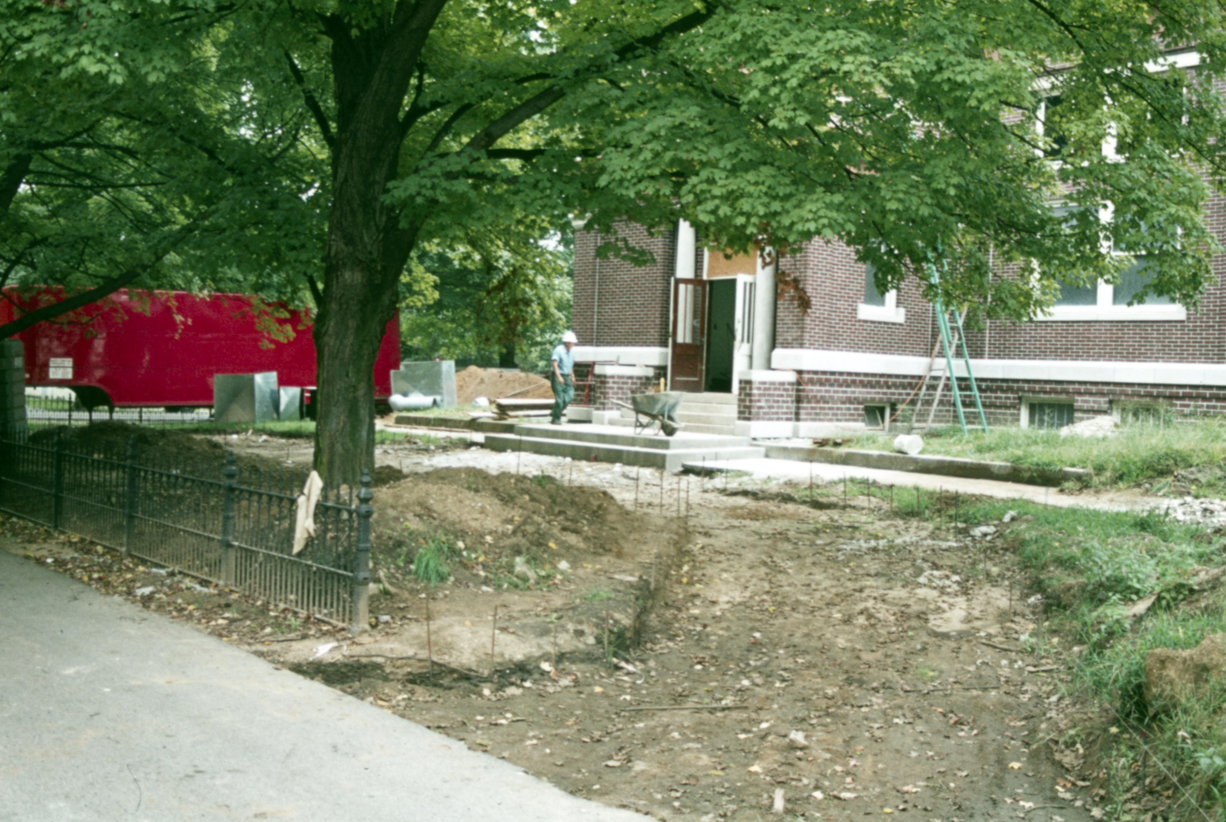 Murphy Auditorium: Murphy Auditorium is located at 419 Tavern Street and was constructed on the plat just east of the Working Men's Institute from 1911 to 1913, using the Doctor Edward Murphy Fund, and was built as part of New Harmony's centennial celebration of 1914. In 2014, the town's bicentennial, Murphy Auditorium became the new home of the concert series Under The Beams, originally housed in the Rapp-Owen Granary. Today, the auditorium is owned by the University of Southern Indiana and is the home of The New Harmony Theater with a seating capacity of 360 people. Refurbish work occurring at the entrance, the north side facing Tavern Street, of the building.