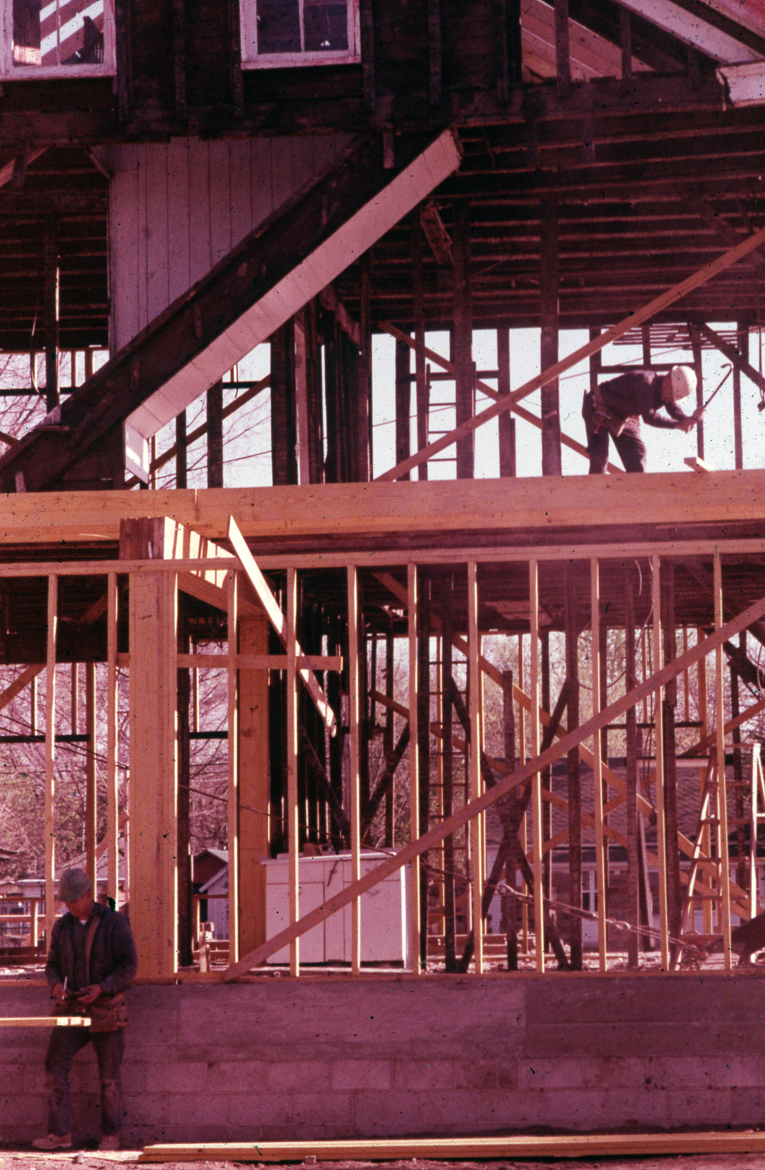 Golden House: This building was moved from the plat of 807 Church, what is now 811 Church Street, to one plat west of 723 E. Church Street but has since been demolished, most likely when the house at 707 E. Church was built in 2009. Elmer Buchta Moving Engineers was contracted for this and many other building moves during the 1970s. This photo shows the Golden House being remodeled.
