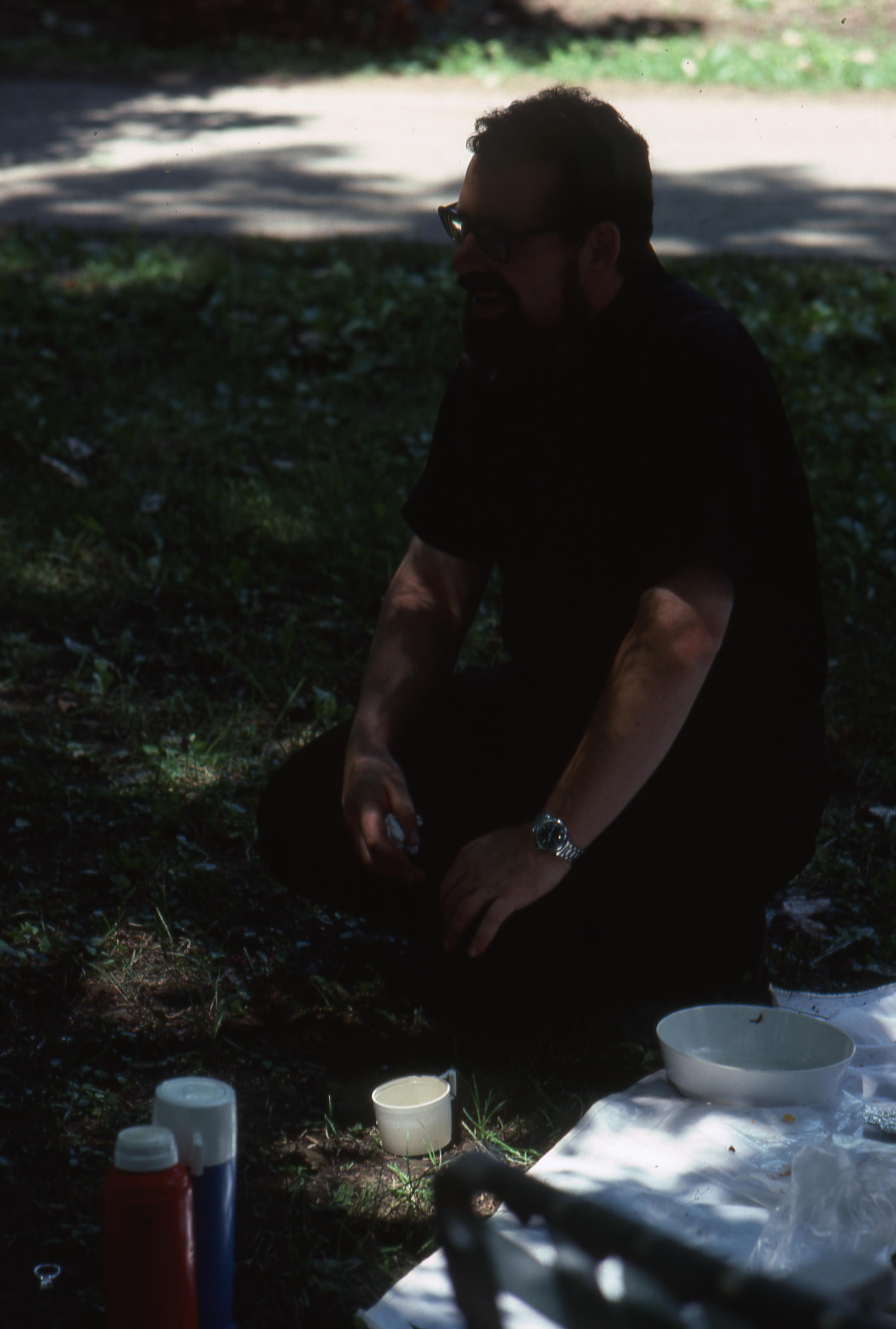 New Harmony Bicentennial Picnic at Murphy Park: This is a photo of a man sitting on a blanket enjoying the day.