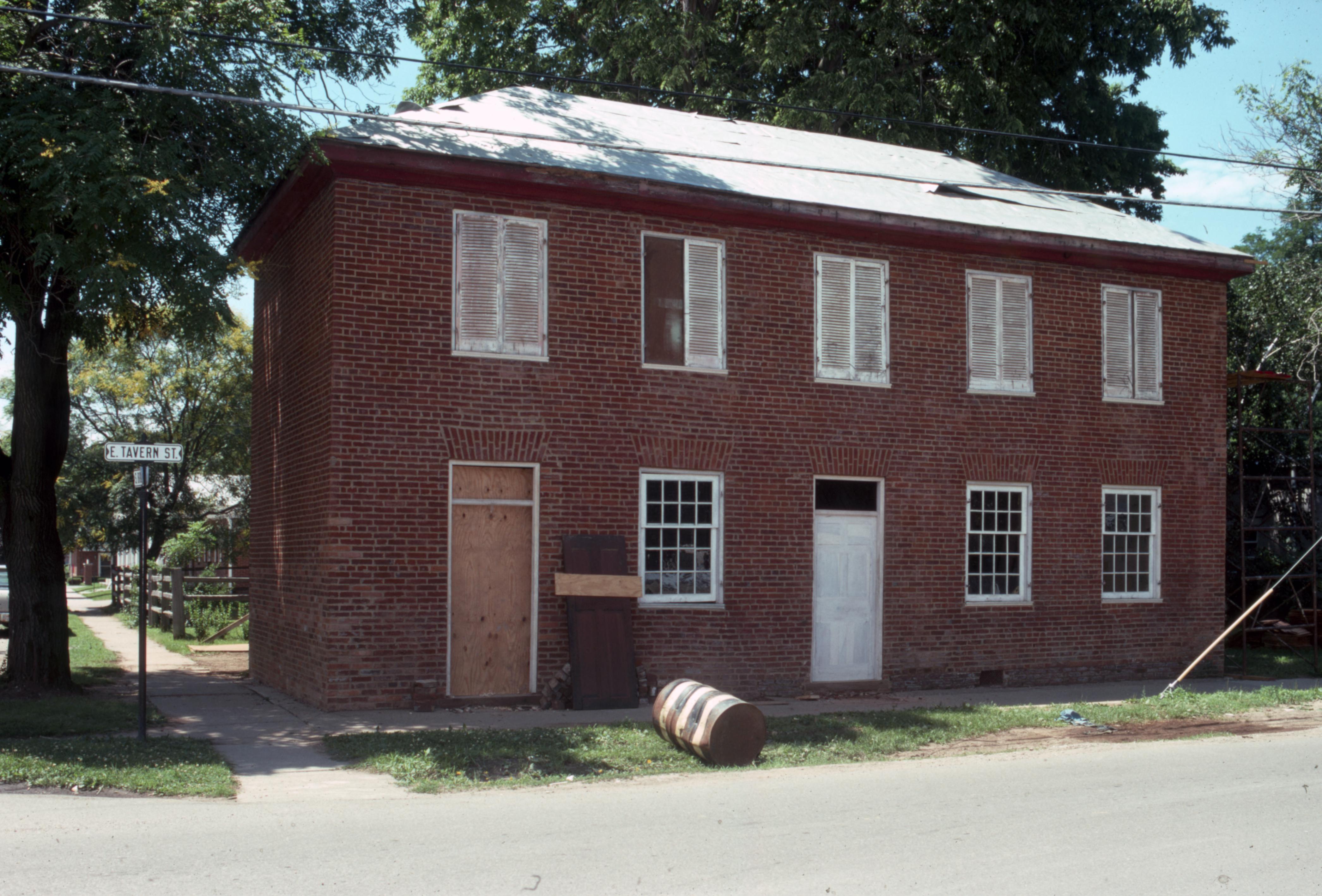 1830 Owen House: Front of the house, facing Tavern Street, showing the new door on the left side. The ground floor windows have been replaced.