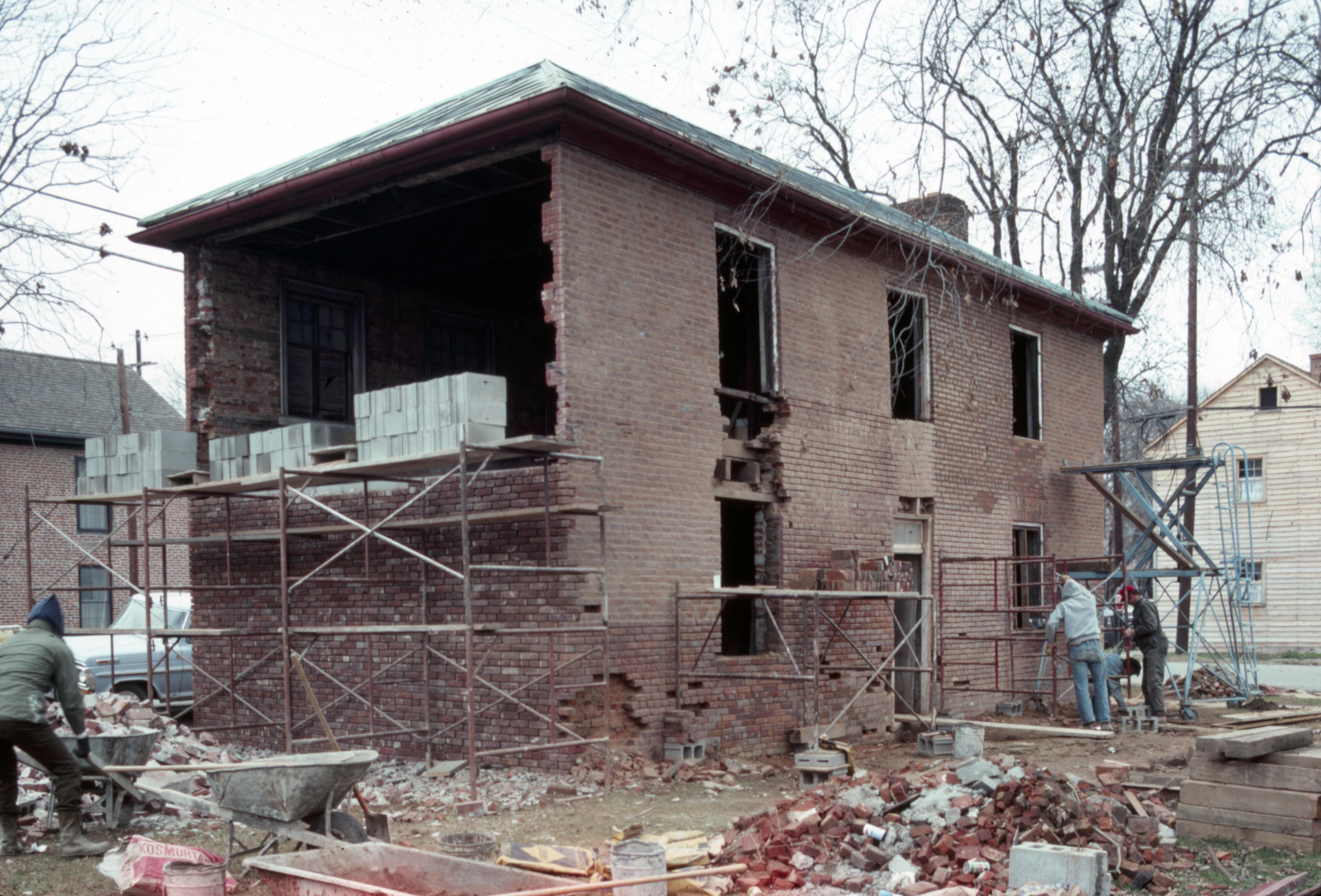 1830 Owen House: Part of the west wall has been removed as well as bricks between some of the windows.