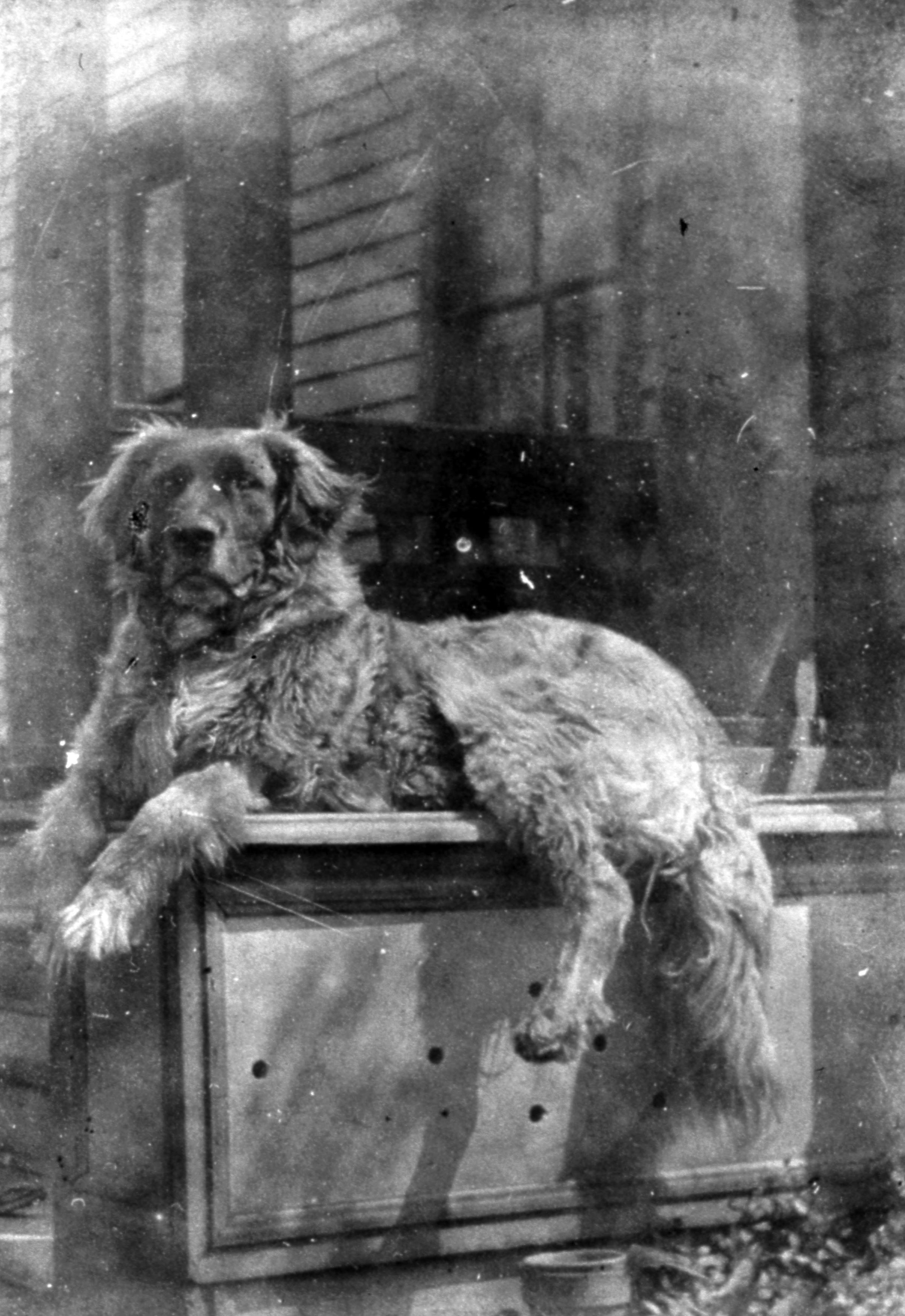 Golden Family: This is a photo of the Golden family's pet dog who appears to be laying on the porch of the Golden family house.