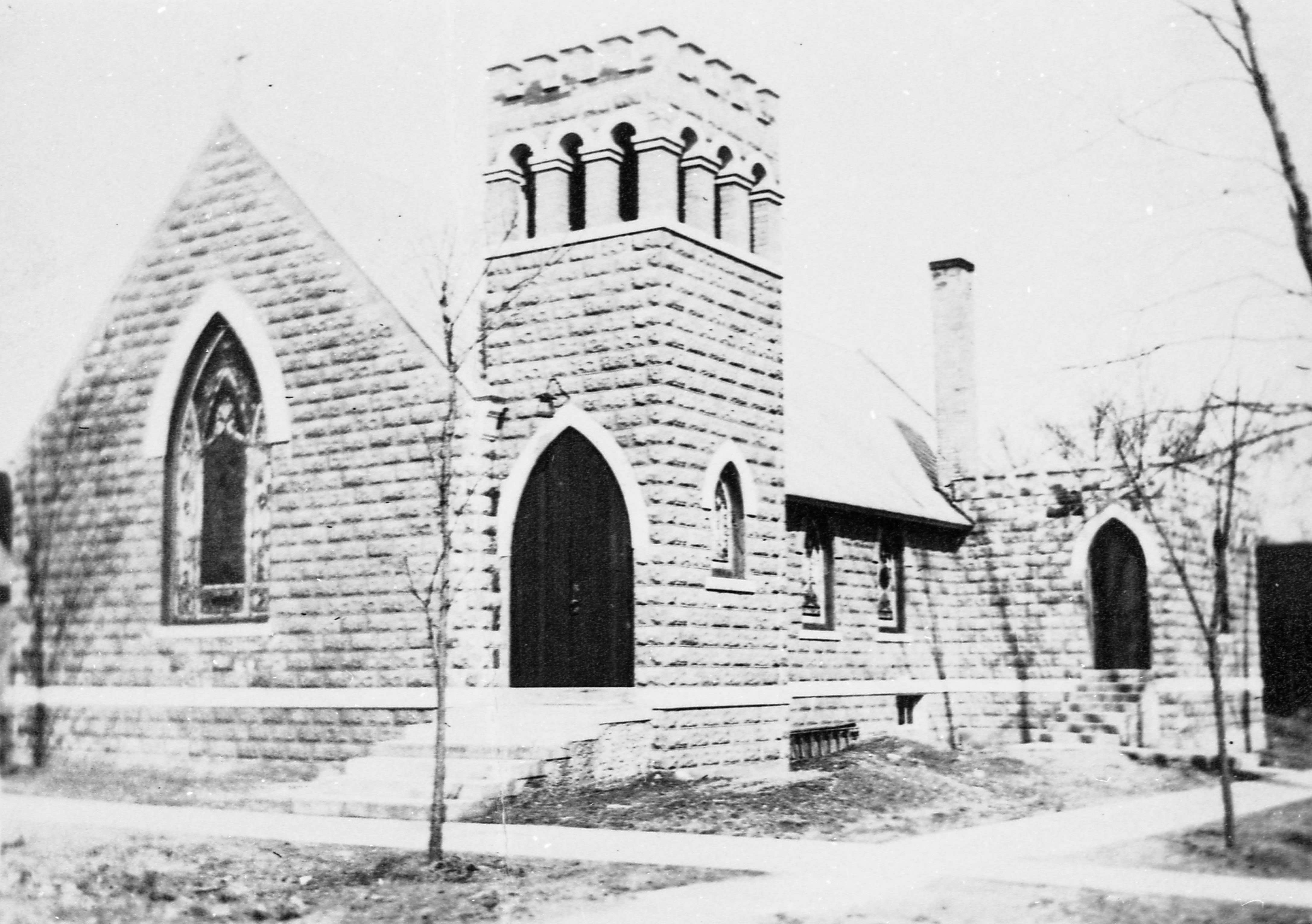 Transparencies and Negatives Collection: Historic photographs. St. Stephen�s Episcopal Church: The church was first organized in 1841 and in 1843 the west wing of the old Rappite church was given for use by the Episcopal�s by Alexander and Anne Maclure. At this time the old burial ground was also given to the church, which was bought back by the Rappites in 1846. Then in 1850 the Episcopal�s sold the west wing of the old Rappite Church for $1000 and in 1854 St. Stephen�s Church was constructed. 1888 saw the construction of a new belfry add to the church to accommodate the new bell. In 1911 the new church was built, and an addition was made to it in 1927. The church is still present as of 2022. This photo shows the new church under construction.