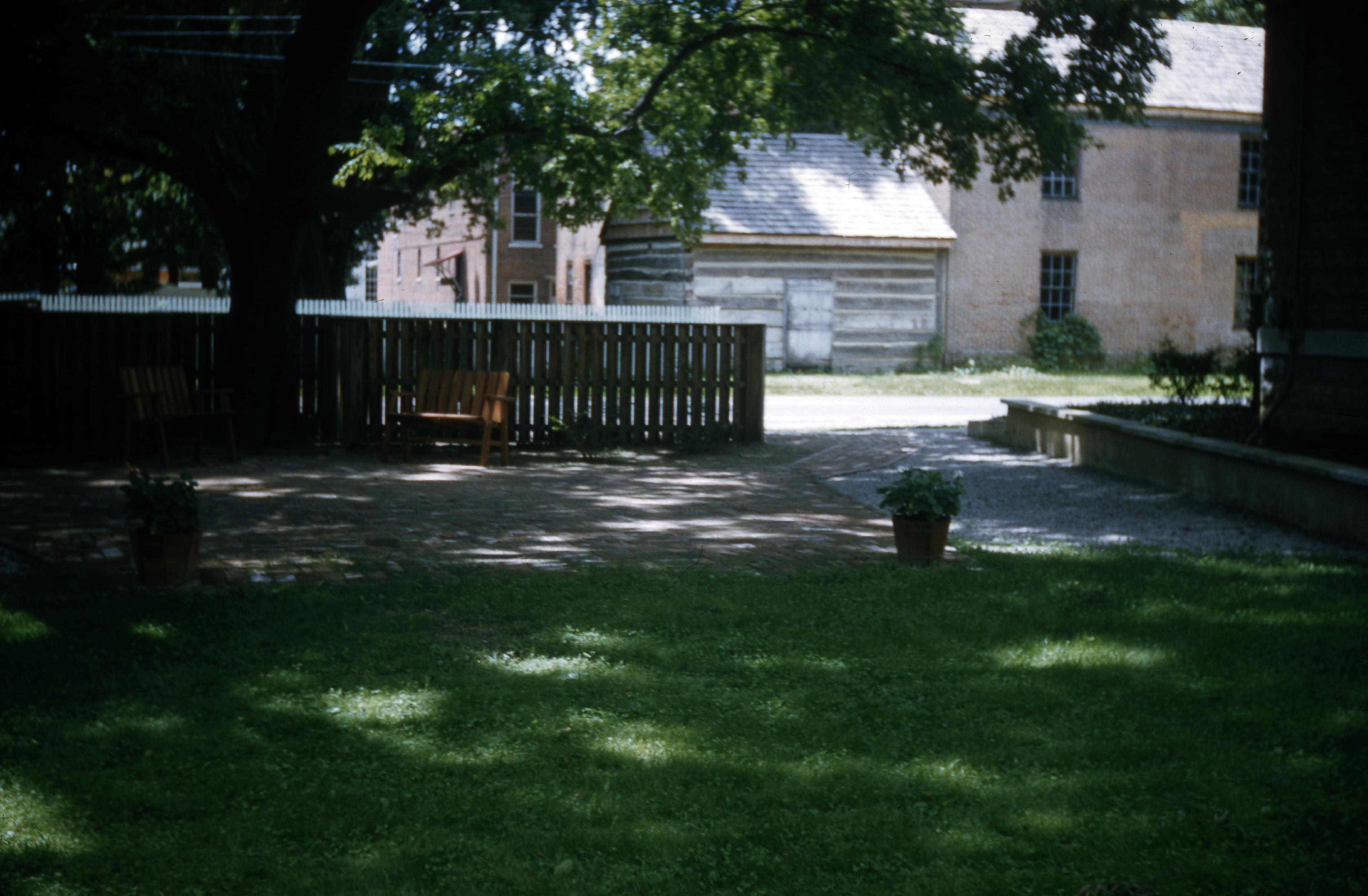St. Stephen's Episcopal Church: The church was first organized in 1841 and in 1843 the west wing of the old Rappite church was given for use by the Episcopal�s by Alexander and Anne Maclure. At this time the old burial ground was also given to the church, which was bought back by the Rappites in 1846. Then in 1850 the Episcopal�s sold the west wing of the old Rappite Church for $1000 and in 1854 St. Stephen�s Church was constructed, the North Street location where the Lenz House now resides.1888 saw the construction of a new belfry add to the church to accommodate the new bell. In 1911 the new church was built, and an addition was made to it in 1927. The church is still present as of 2022. This photo shows the yard behind the church.