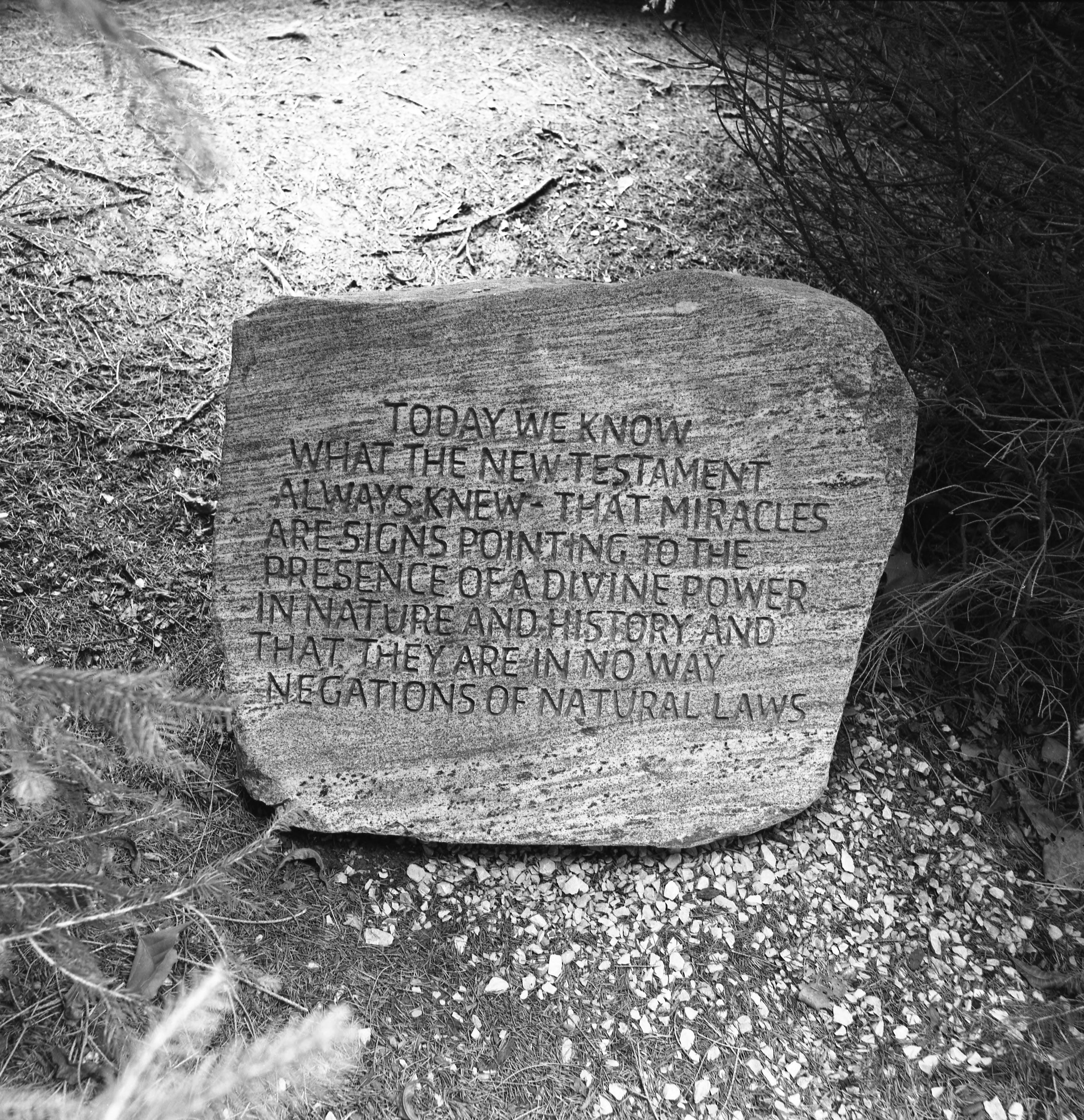 Transparencies and Negatives Collection: Historic photographs. This is a photo of a dedication stone at the Paul Tillich Park.