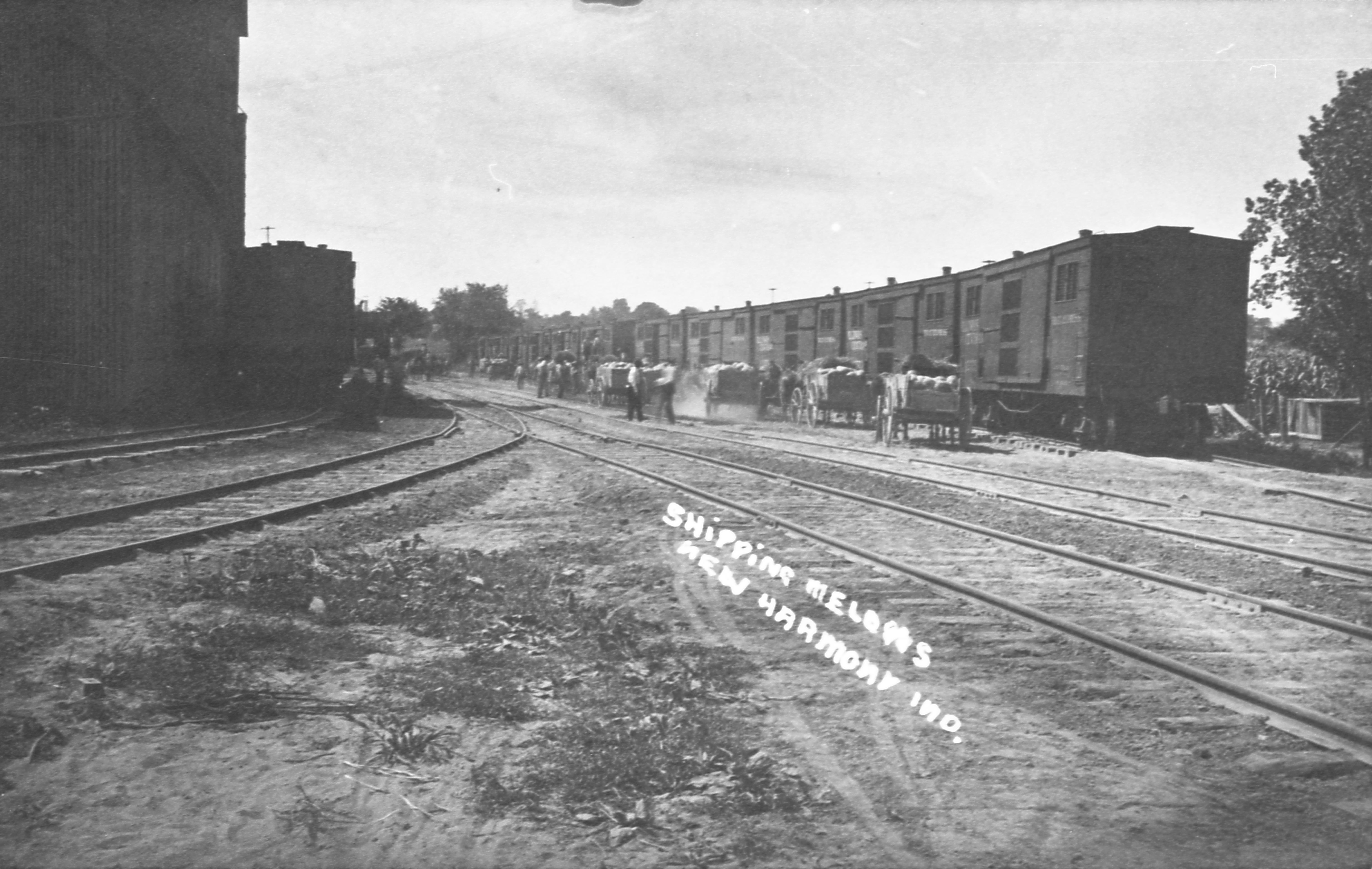 Transparencies and Negatives Collection: Historic photographs. This photo was taken at the tracks of the old Corbin Mill. The caption reads ""Shipping Melons New Harmony Indiana"".