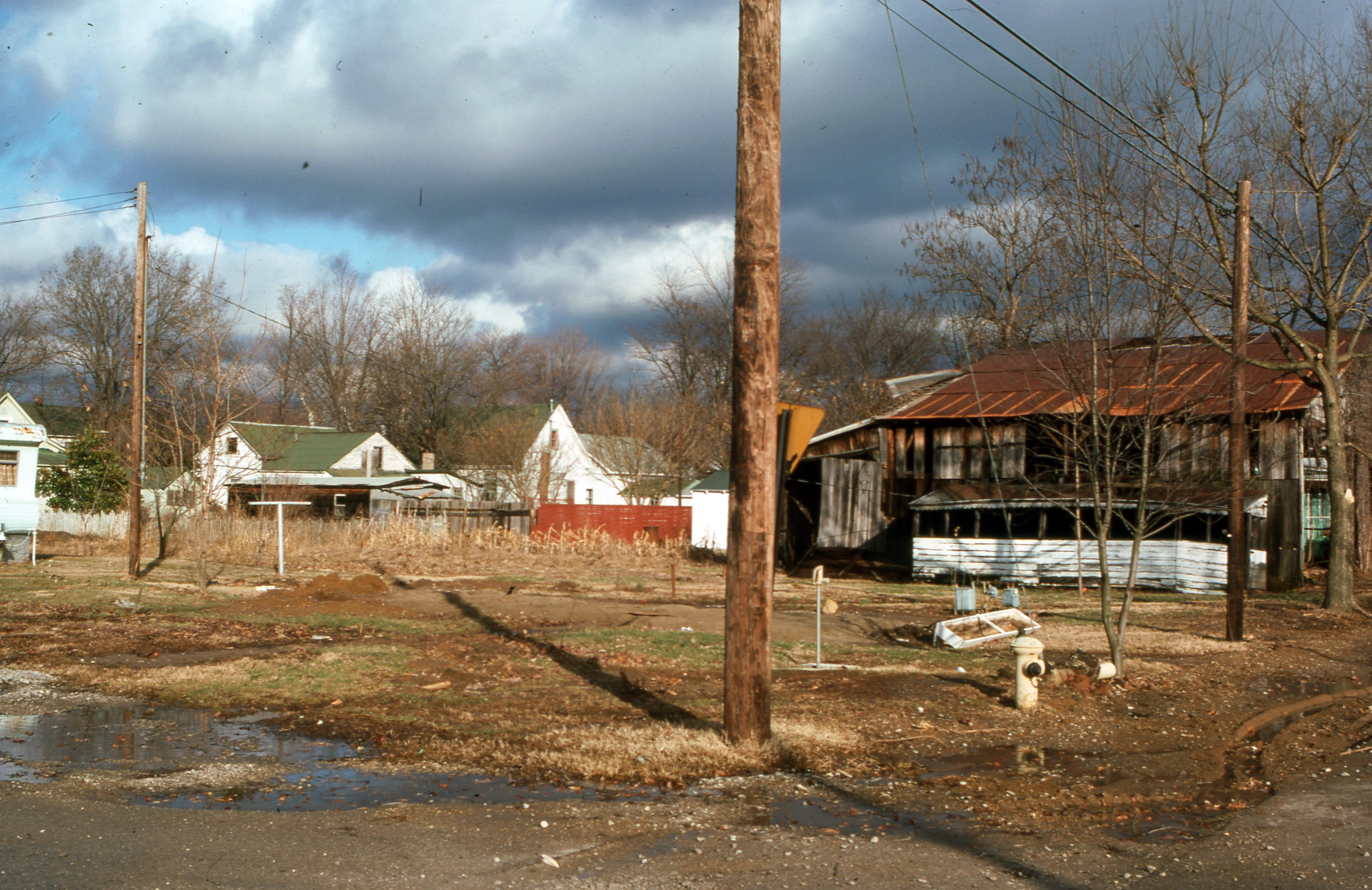 Bauer House: This house was originally located on the north side of North Street in town block 2 C/E. It was moved to the new location at 518 First Street before construction on the Atheneum had begun. Elmer Buchta Moving Engineers was contracted for this and many other building moves during the 1970s. This photo shows the plat to which the house was moved on 518 First Street.