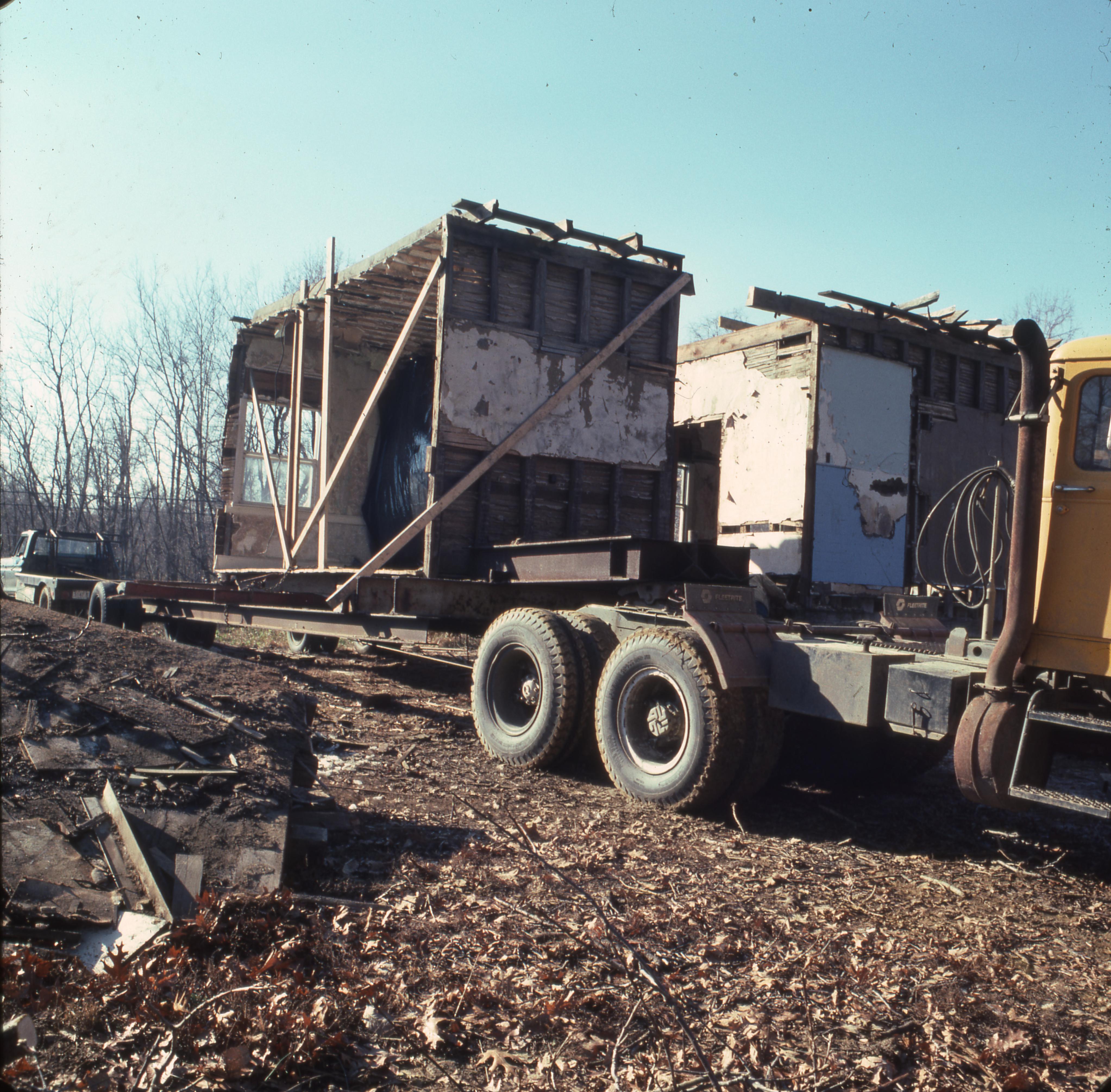 The Jaquess House: This is a photo of the Jaquess House, from which the parlor was taken, was moved from somewhere near Poseyville. It was then taken through a field to near the edge of a highway where it was dismantled. The parlor was then incorporated into the Owen House on the corner of Tavern and Brewery Streets in town block 6 E east.