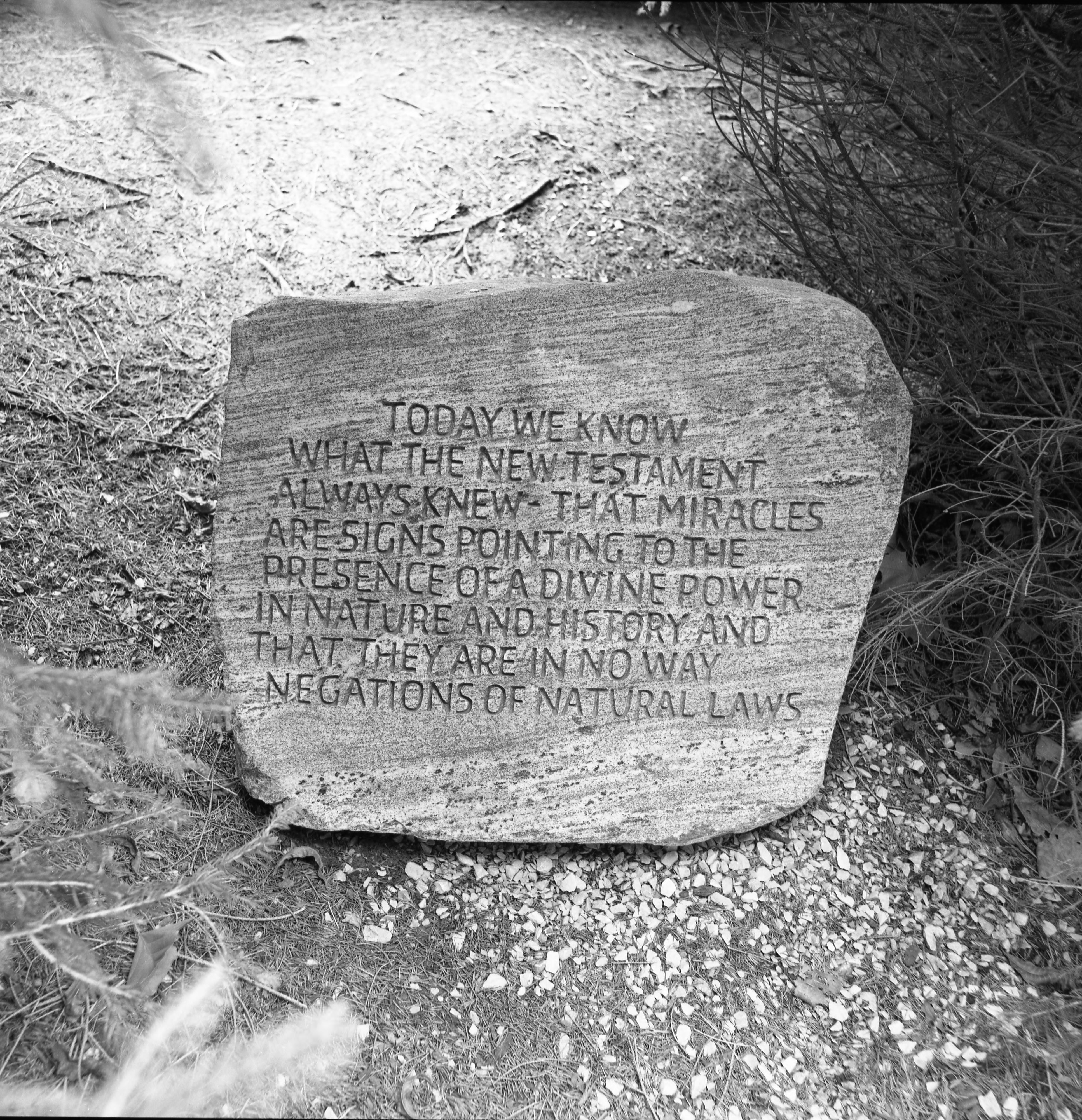 Transparencies and Negatives Collection: Historic photographs. This is a photo of a dedication stone at the Paul Tillich Park.