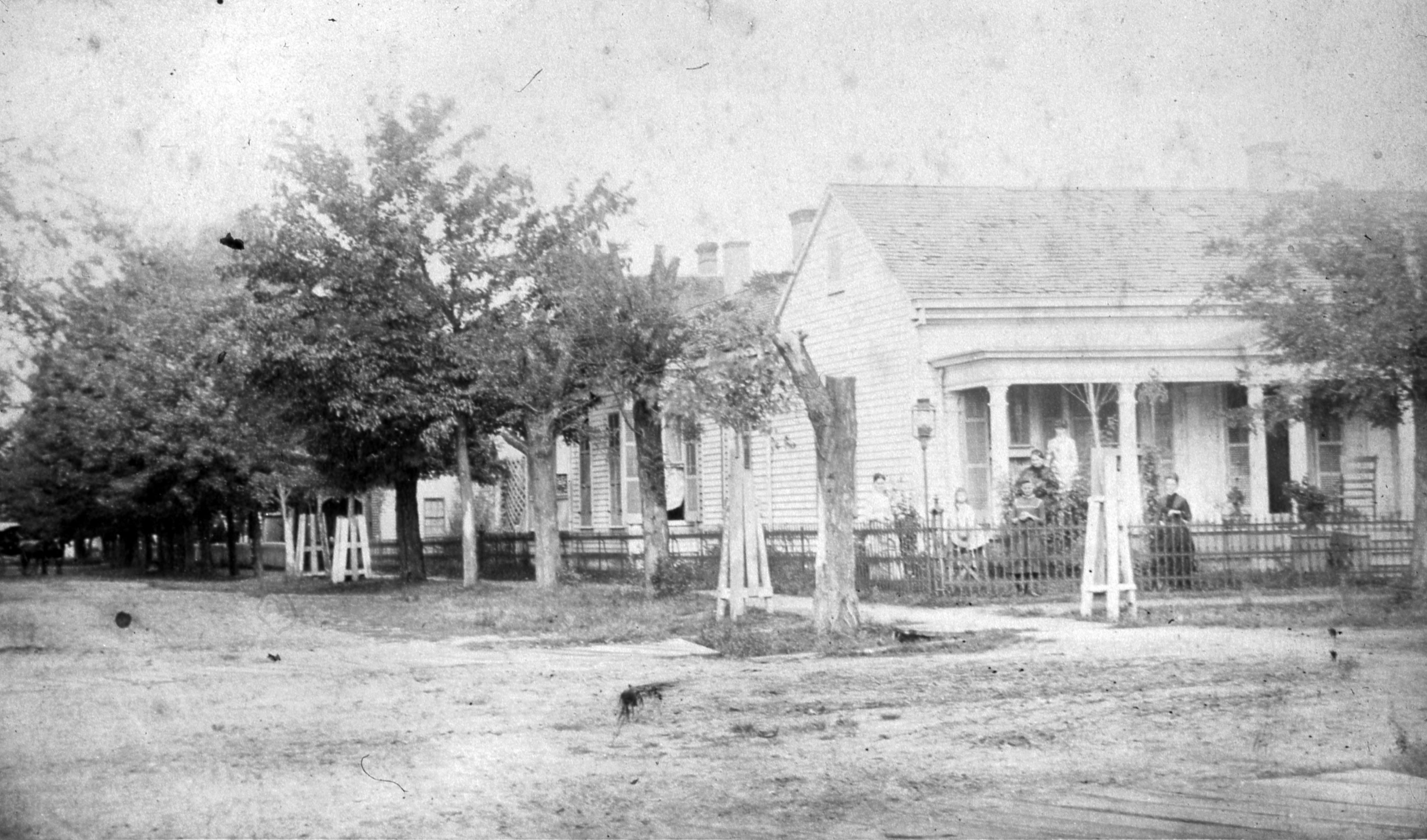 The Lichtenberger House: This house is located on the northwest corner of Tavern and West Streets and was built in 1843. This was the home of the Lichtenberger family who owned a well-known store on the corner of Main and Tavern Streets. This photo shows the family posing in the front yard of the house. Note the early lamp post on the corner.