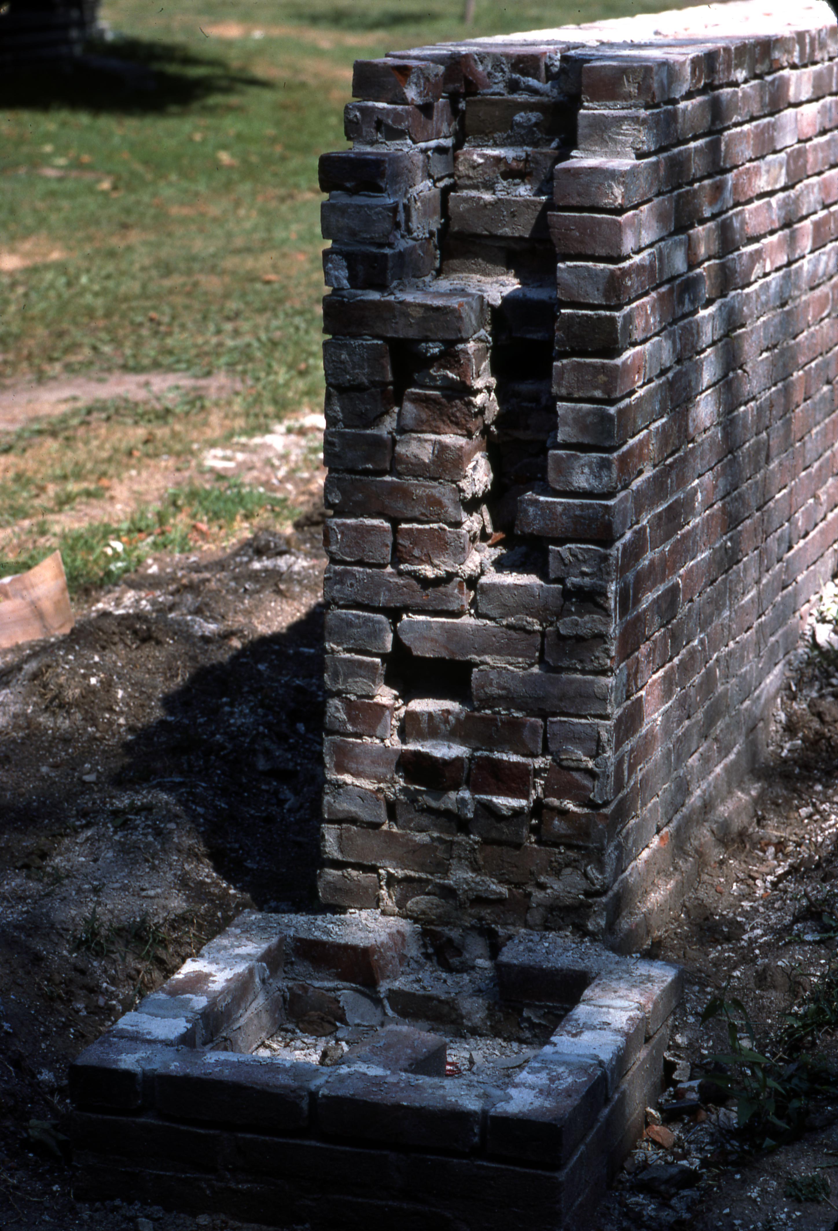The repairing of the brick wall surrounding the cemetery. The Harmonist Cemetery located at the end of Granary and West Street. The cemetery was originally located in part of the Harmonist orchard and was fenced in with a brick wall in 1874. Located within the wall are at least 20 Middle Woodland Period mounds most likely of the Hopewell people. The property is maintained by the Indiana State Museum and Historic Sites.