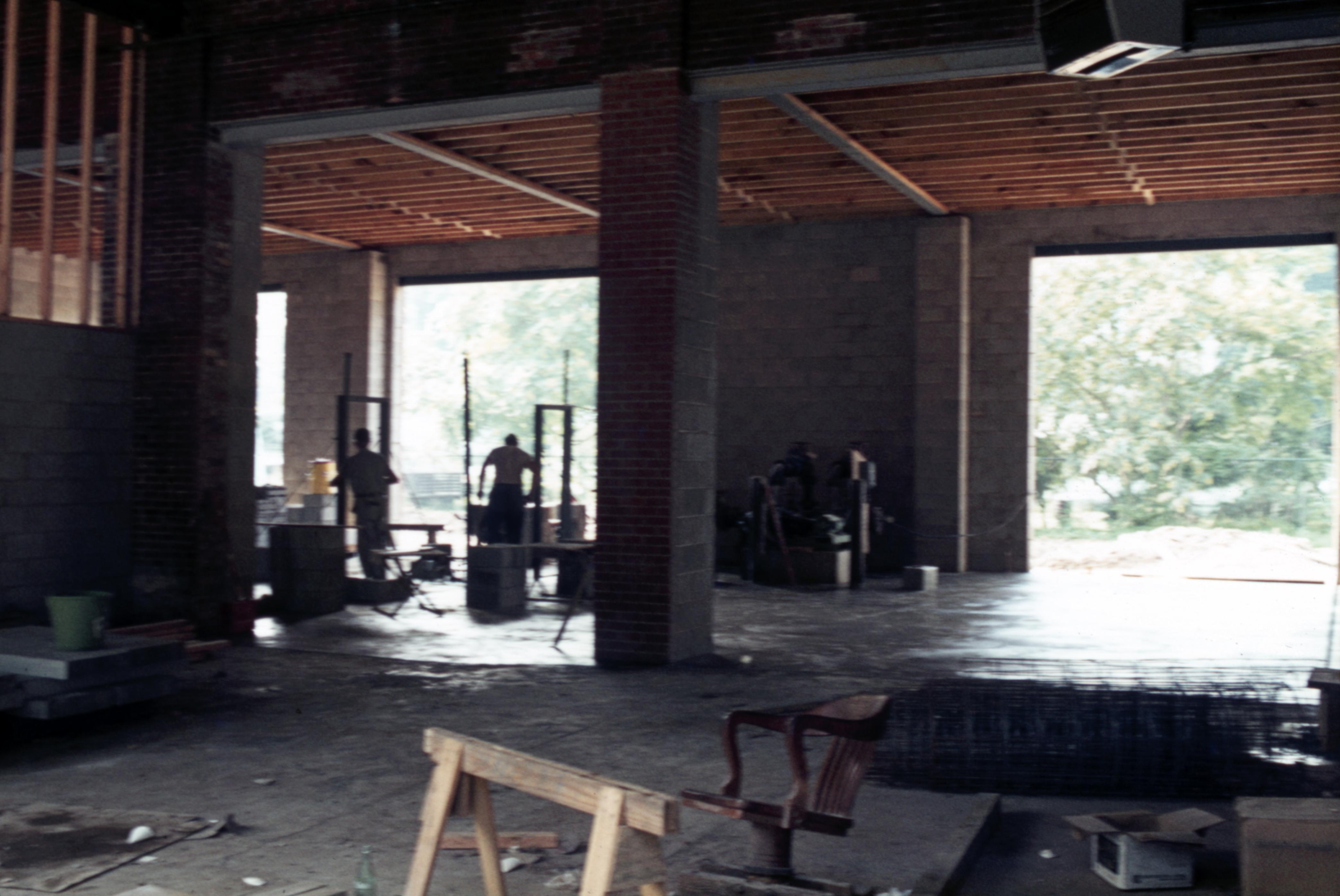 New Harmony Fire House: Located between 707 and 733 Tavern Street. The fire house was constructed on the site of the old New Harmony Electric Light and Power Station and even incorporated parts of the old building into the new construction. This is an interior view of the building facing north toward Tavern Street.