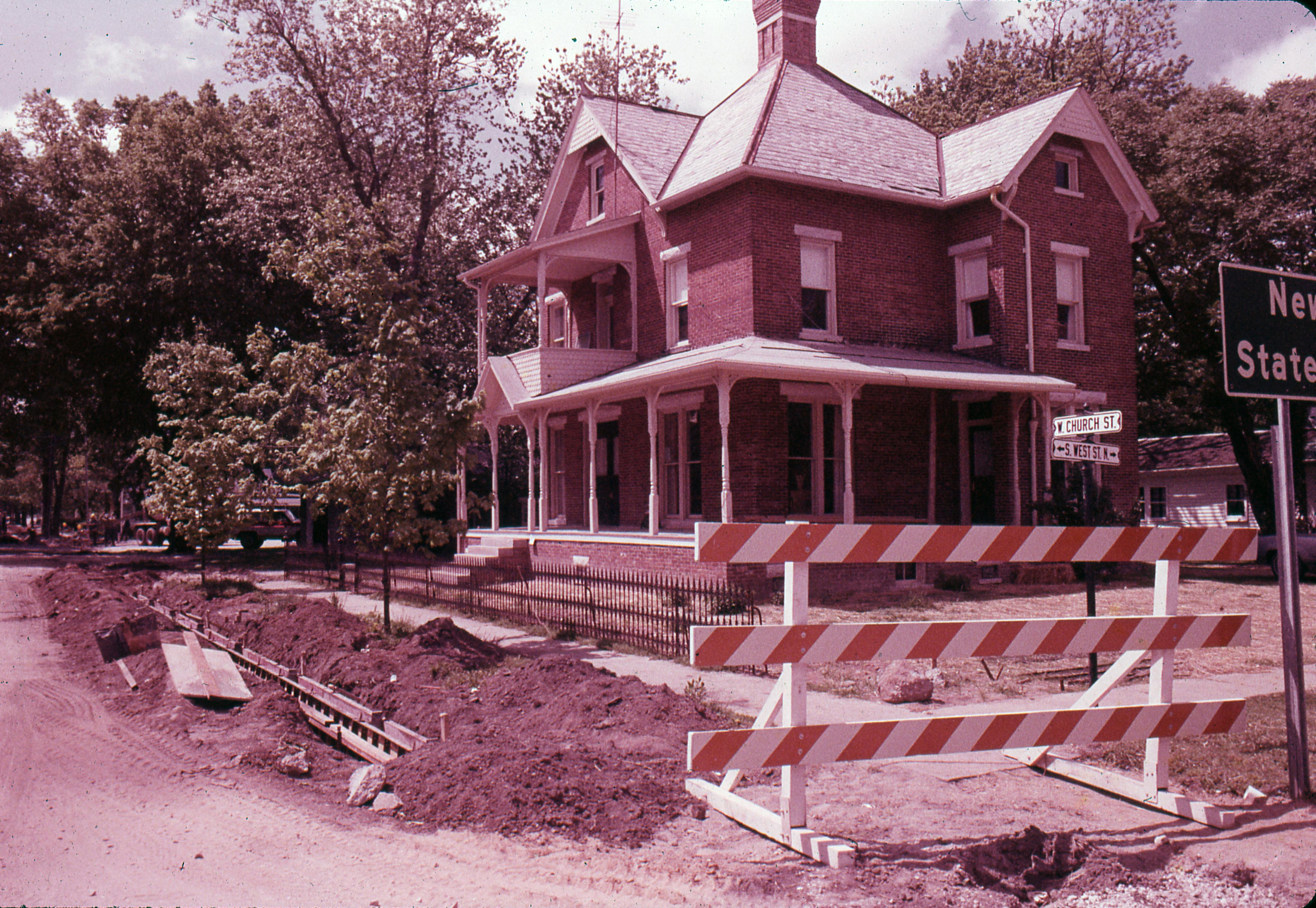 Streets: Church Street at the corner with West Street during the road replacement. Note the Chadwick House on the right side of the Photo.