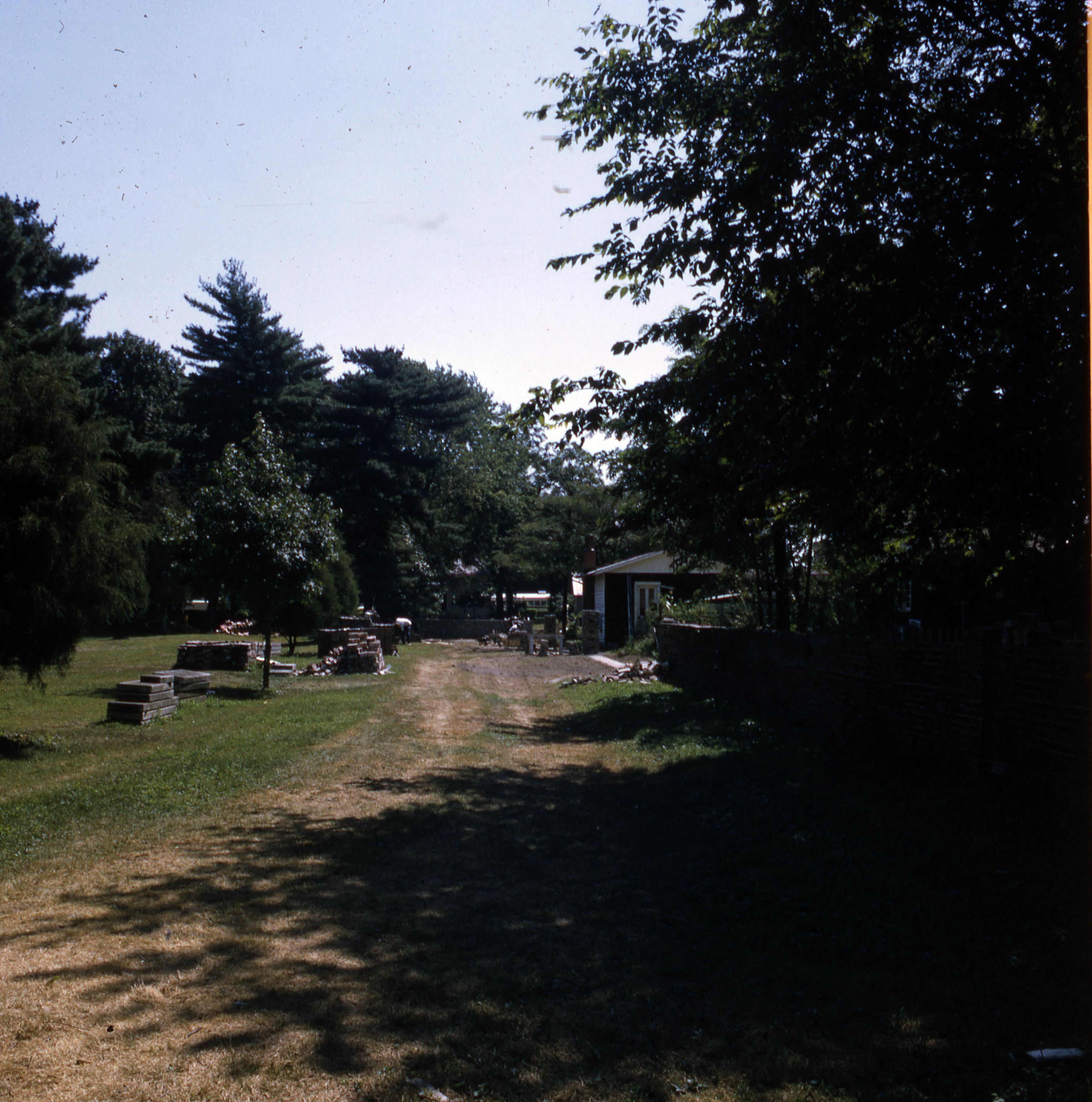 Mumford/Pricher House: This photo was taken from the old Mumford/Pricher House site, facing south toward Tavern Street. The house was either moved or demolished between 1943 and 1972.
