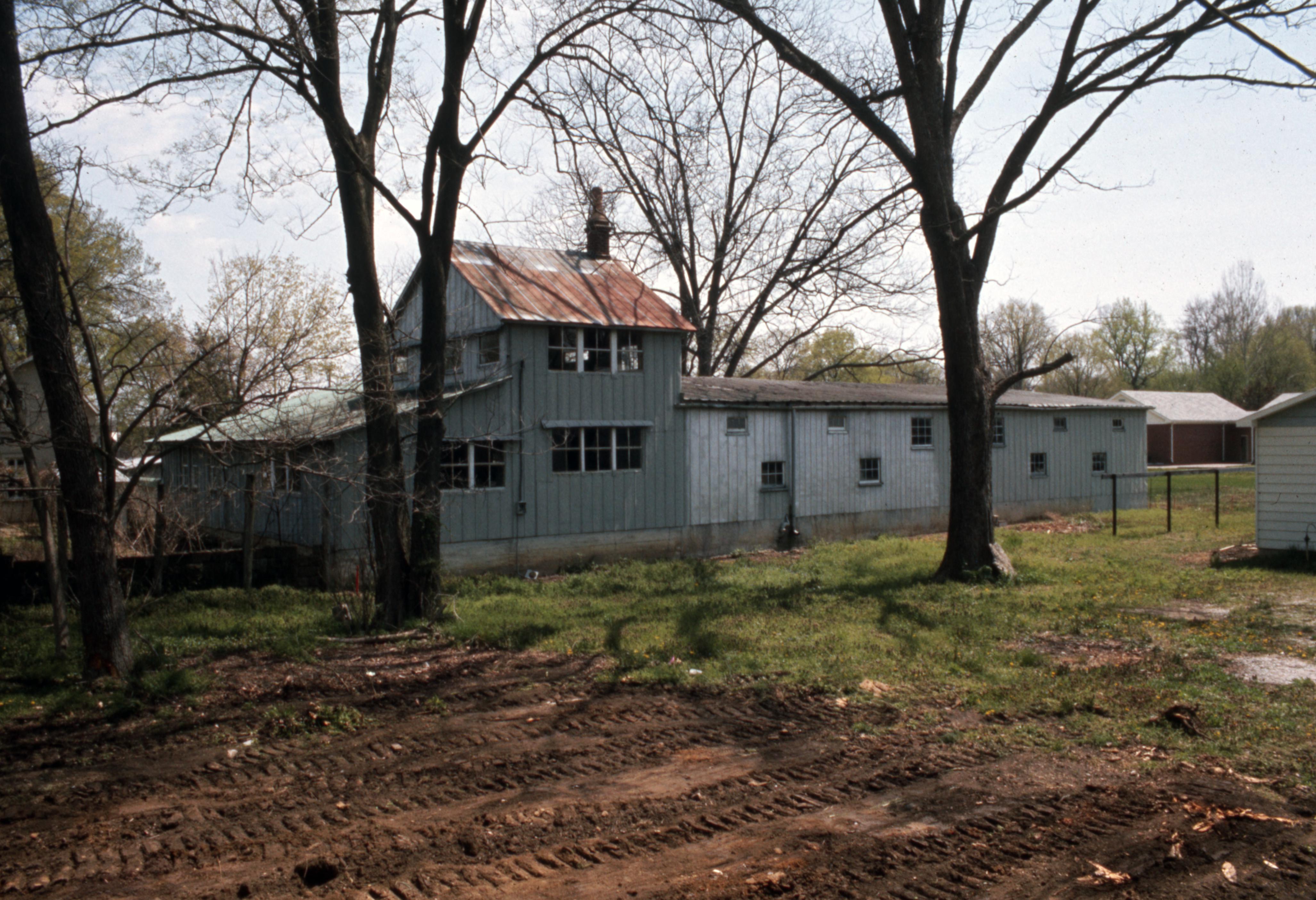 Lanark Development Collection: Buildings which were demolished during the construction of 820 Main Street New Harmony Indiana. The long metal building was demolished. The building on the far right side of the photo was moved to one block north of The Posey County News on 3rd Street, New Harmony, Indiana.