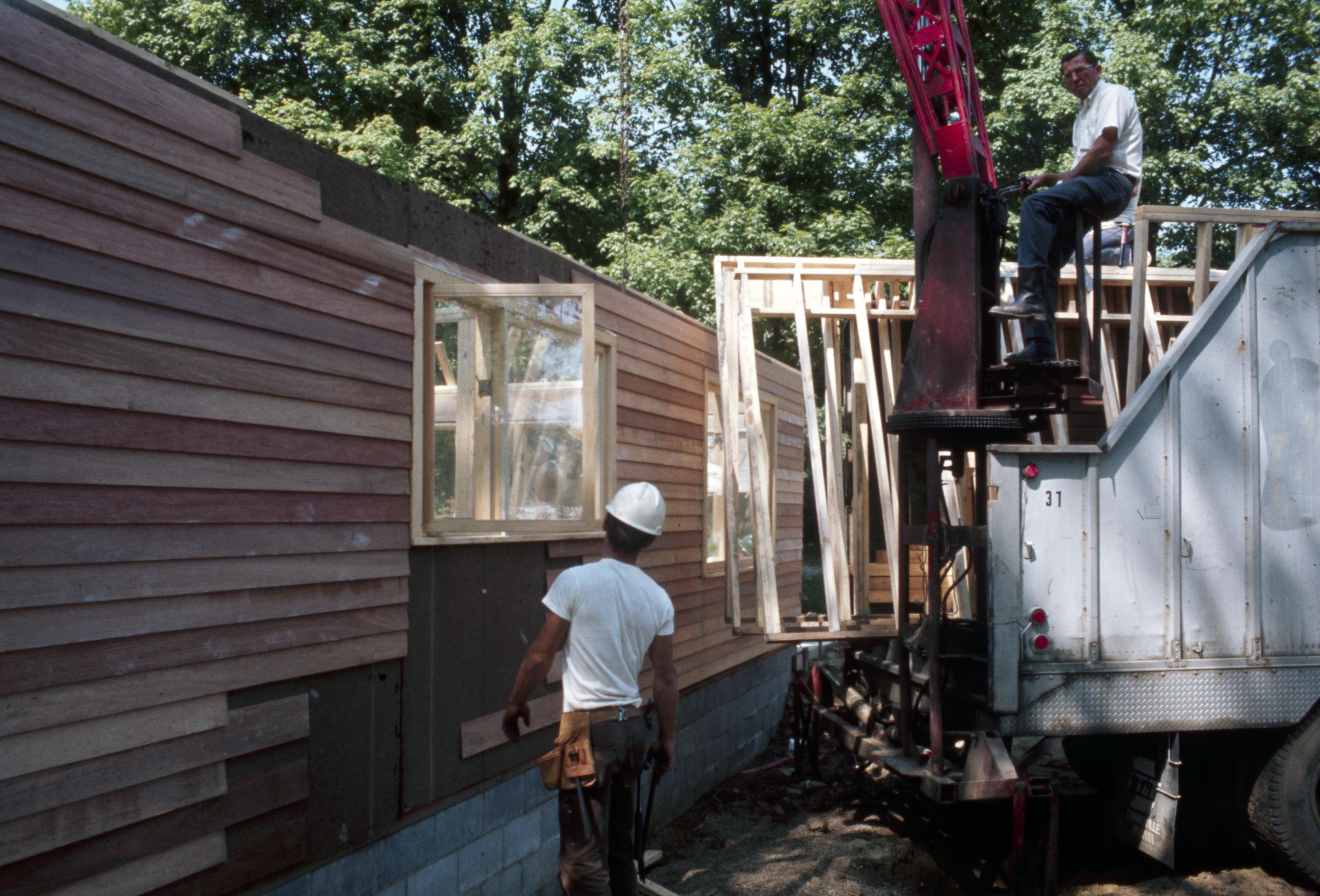 Lanark Development Collection: Construction of 820 Main Street New Harmony Indiana. Men working on the new construction.