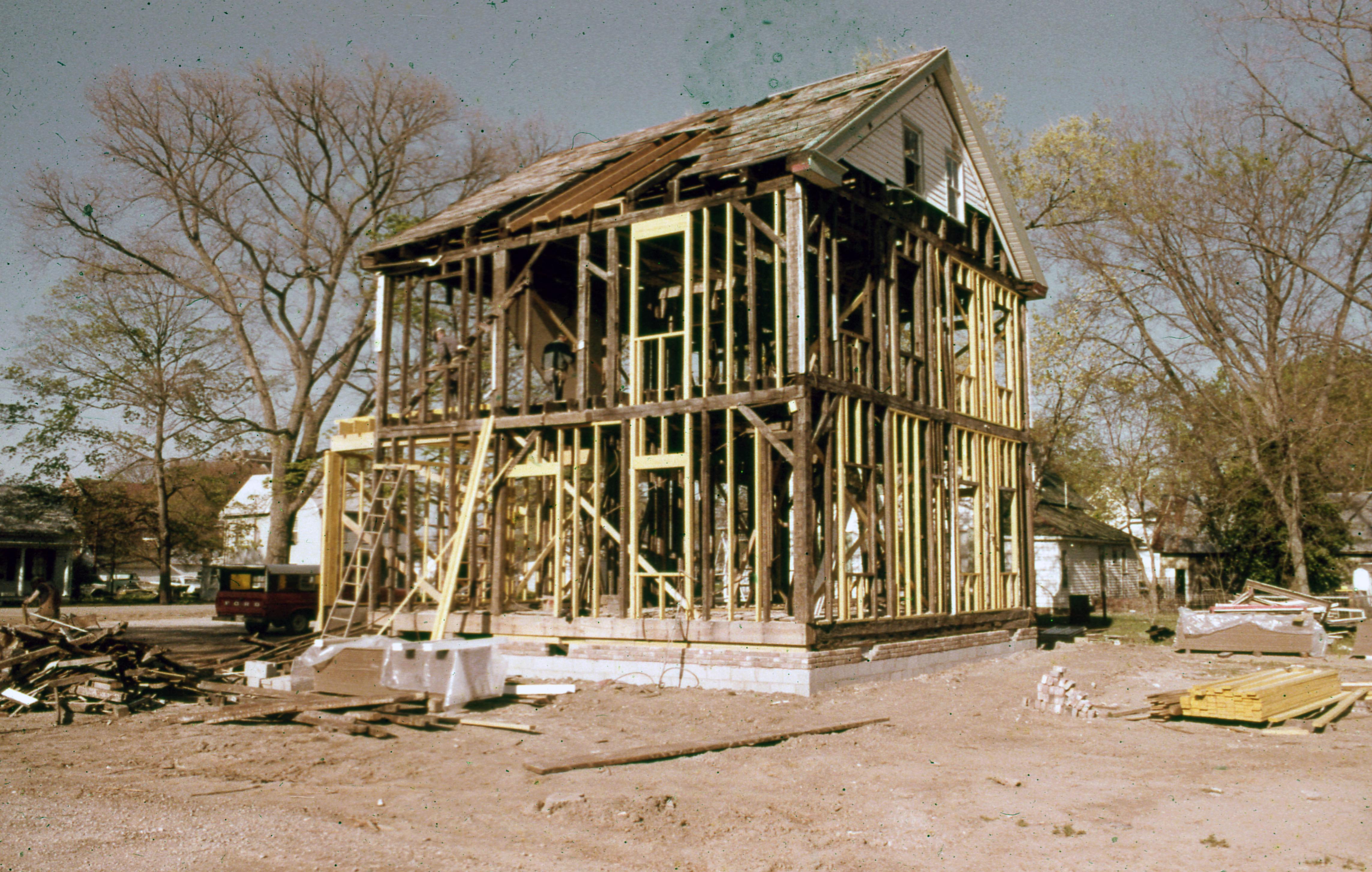 Golden House: This building was moved from the plat of 807 Church, what is now 811 Church Street, to one plat west of 723 E. Church Street but has since been demolished, most likely when the house at 707 E. Church was built in 2009. Elmer Buchta Moving Engineers was contracted for this and many other building moves during the 1970s. The houses across Church Street, on the left side of the photo are on the far left 712 Church, and the other was demolished at some point.