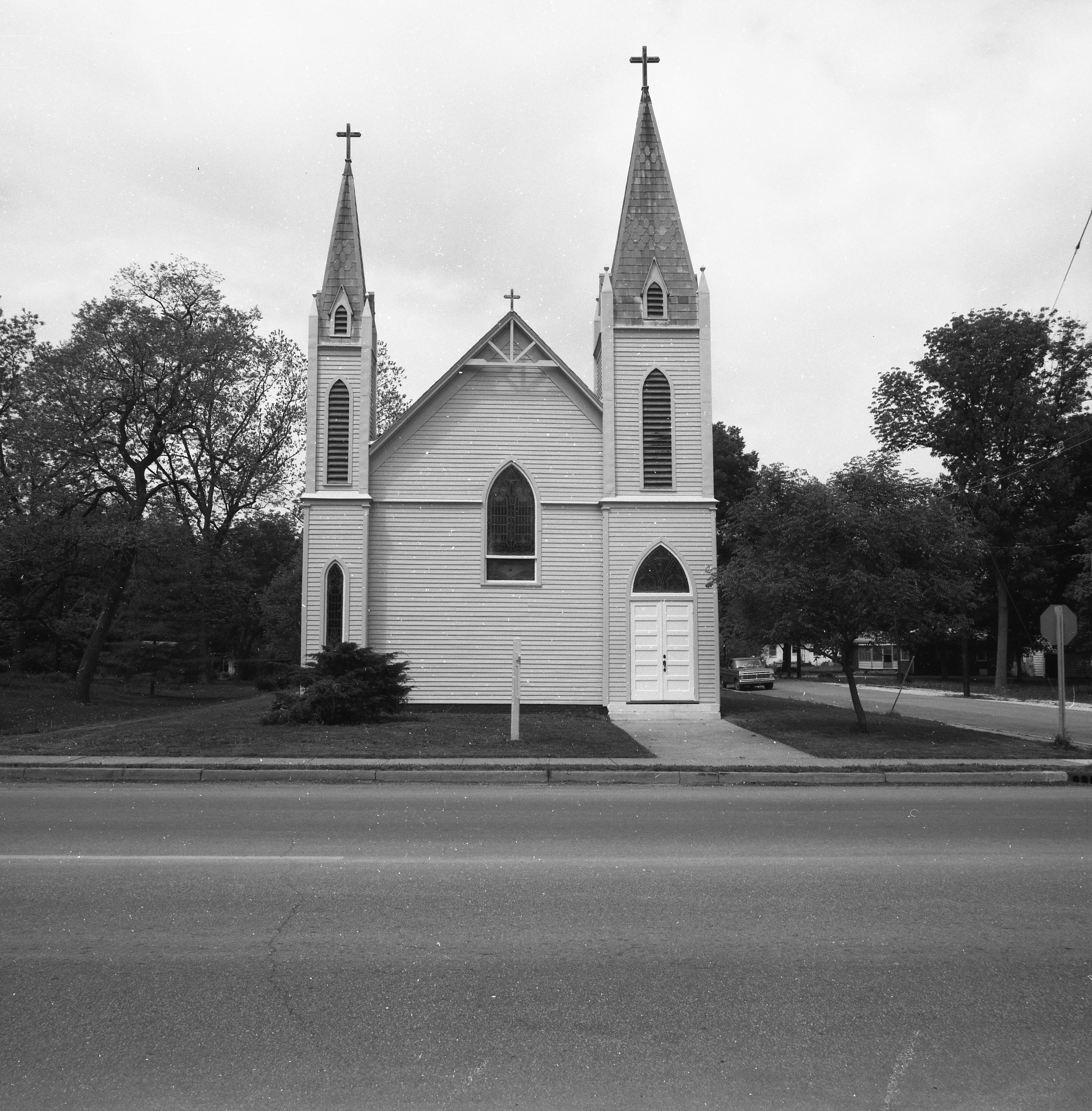 Transparencies and Negatives Collection: Historic photographs. This is a photo of Holy Angel's Rectory Church, located on the southwest corner of South and Main Streets.