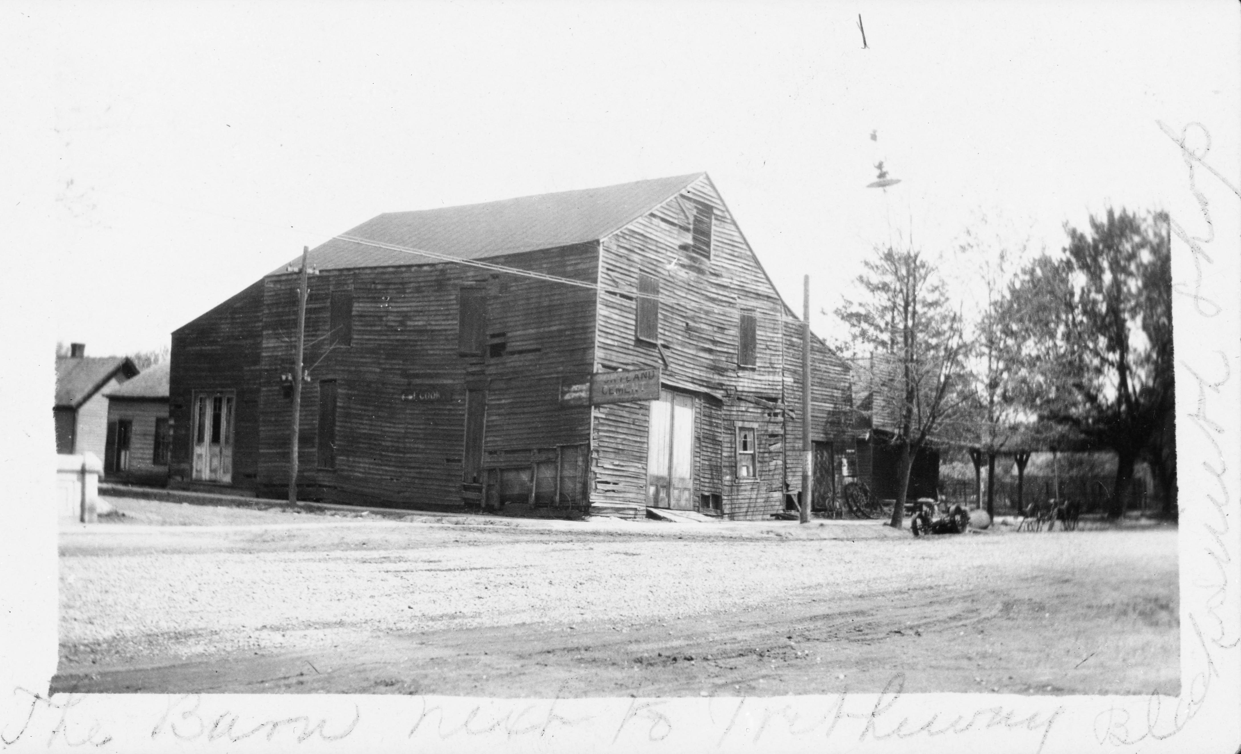 Transparencies and Negatives Collection: Historic photographs. William Ford Tobacco and Grain Warehouse: This building may have been one of three very early structures which were built with the same orientation along South Street toward the east. Town Block 8 E was initially a part of the old Tannery but by 1848 the block had been divided into smaller plats. The map from this period (UA58 � 10912) shows there is a build on this location, one of three, and on the latter Sanborn Maps it is the only one left, labeled as William Ford�s Tobacco and Grain Warehouse. The building was demolished in 1923, after which a filling station was constructed on this plat.