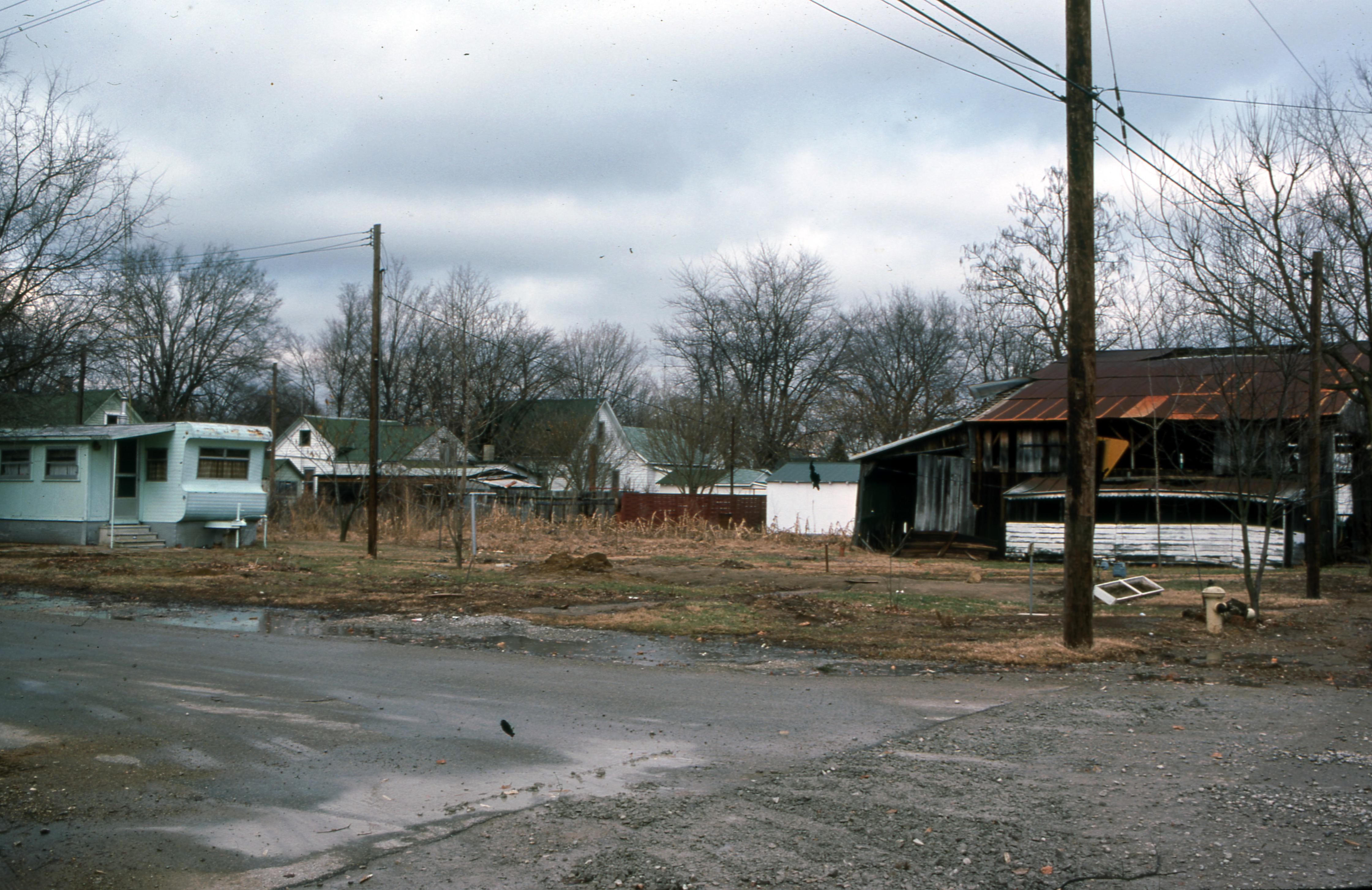 Bauer House: This house was originally located on the north side of North Street in town block 2 C/E. It was moved to the new location at 518 First Street before construction on the Atheneum had begun. Elmer Buchta Moving Engineers was contracted for this and many other building moves during the 1970s. This photo shows the plat to which the house was moved on 518 First Street.