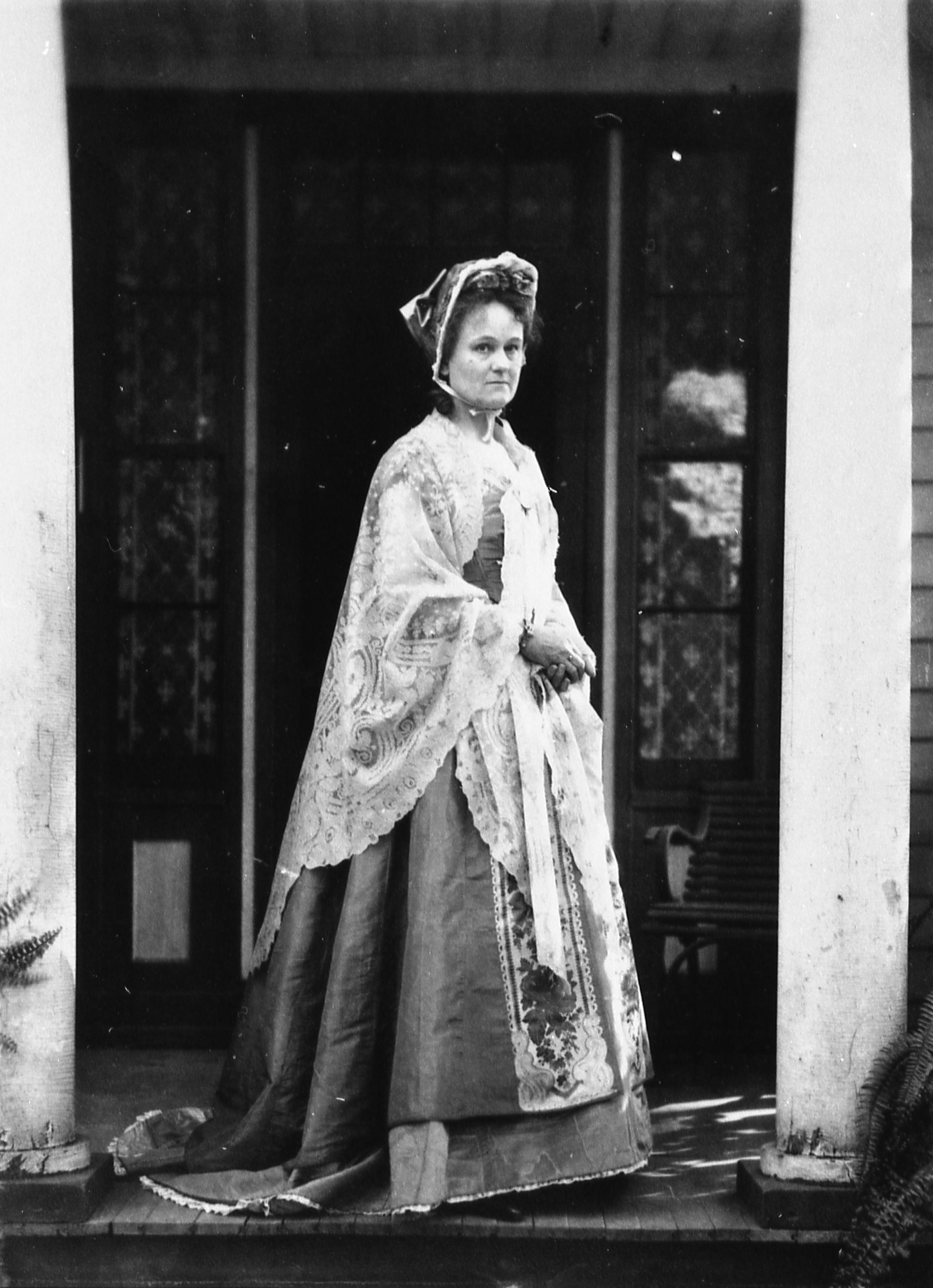 Transparencies and Negatives Collection: Historic photographs. Unidentified woman standing on the porch steps of the Golden House.