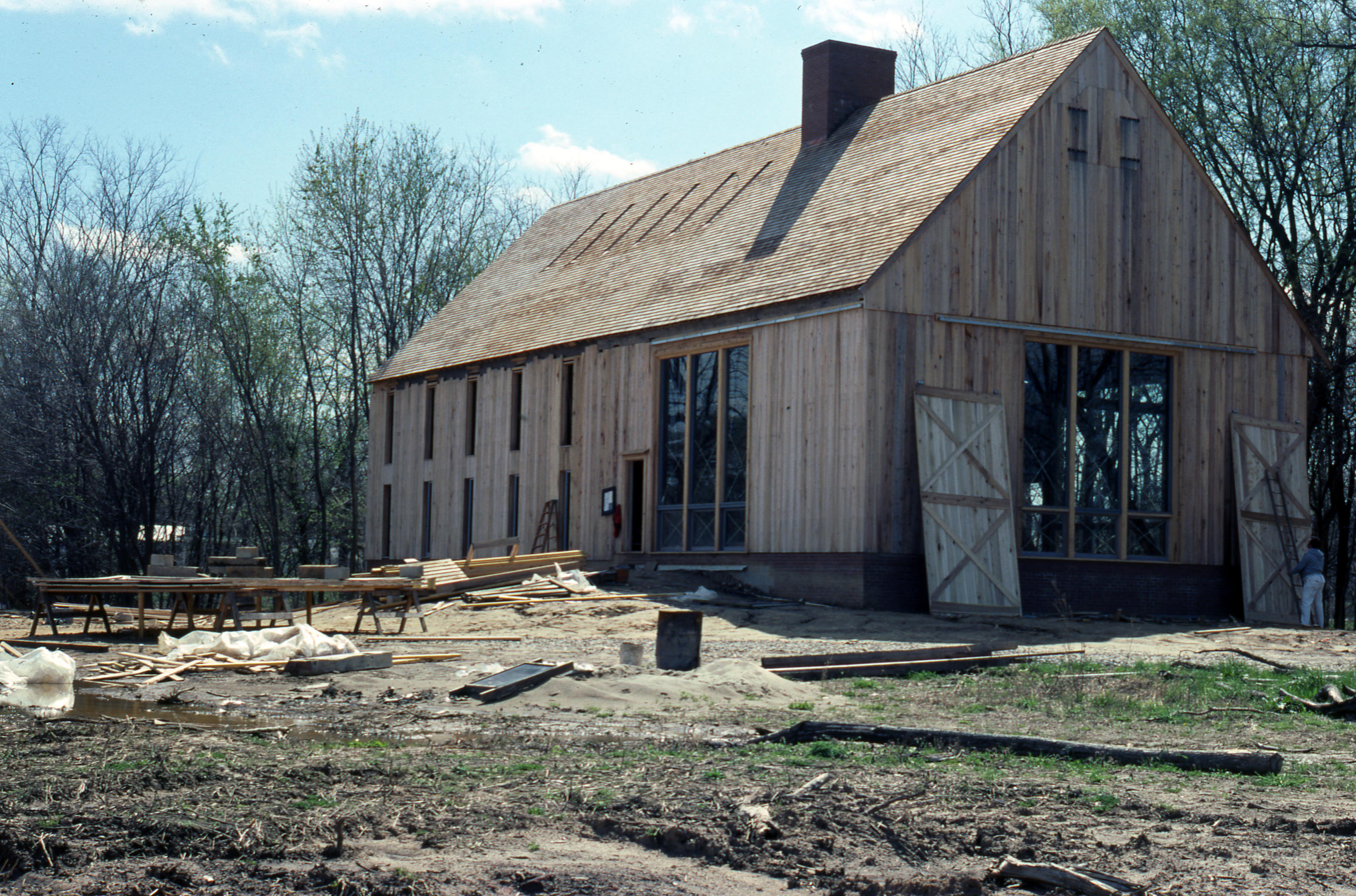 Construction on the MacLeod Barn Abbey. The MacLeod Barn Abbey was inspired by the Reverend George MacLeod, a famous leader of the Iona Community in Scotland. After meeting with MacLeod, Mrs. Jane Blaffer Owen returned to New Harmony to begin a similar Christian movement in the United States. She created the Barn Abbey to provide this movement with an interdenominational Christian Center. The MacLeod Barn Abbey is located at 810 and is owned and operated by the Robert Lee Blaffer Foundation.