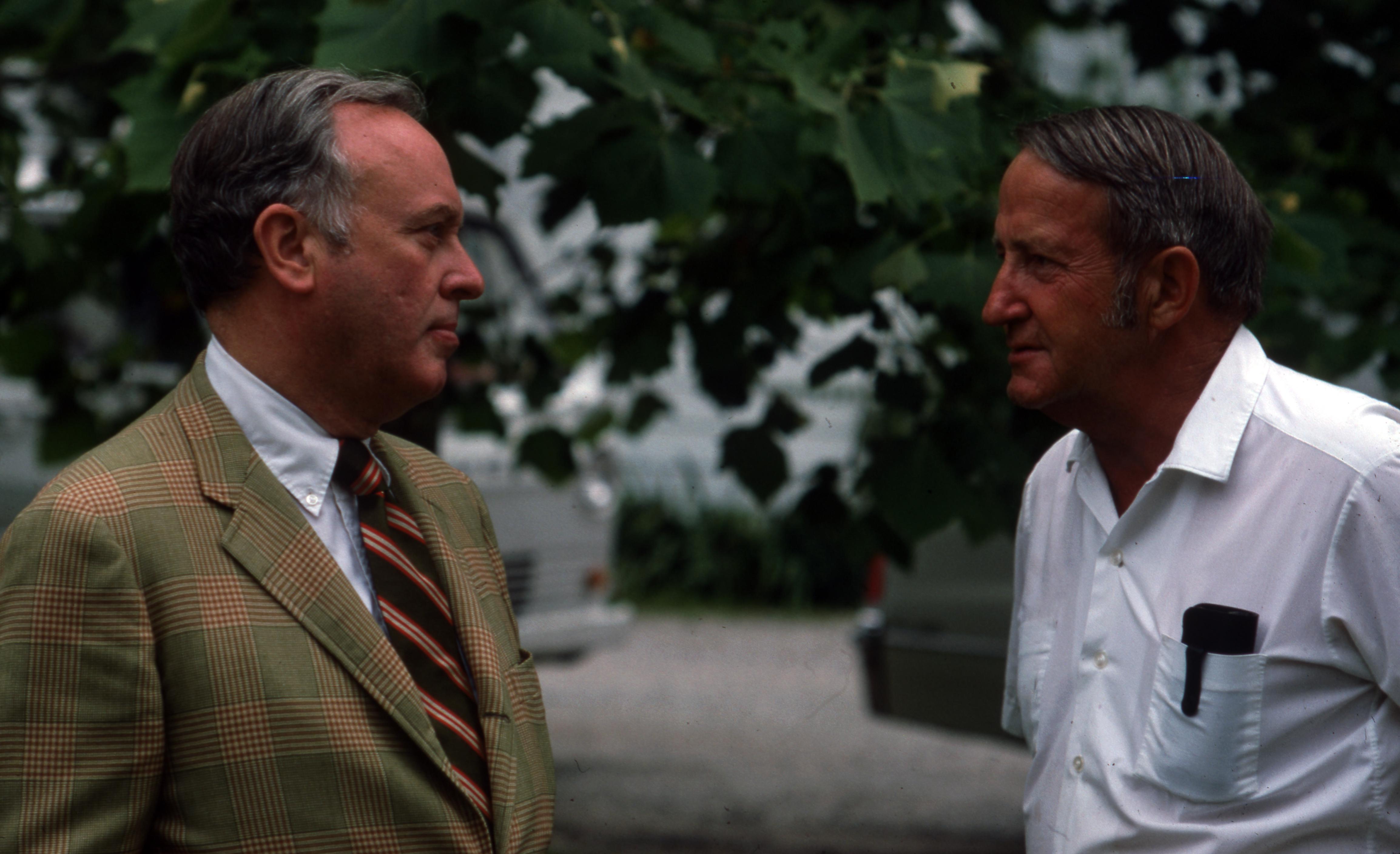 Golden House: This building was moved from the plat of 807 Church, what is now 811 Church Street, to one plat west of 723 E. Church Street but has since been demolished, most likely when the house at 707 E. Church was built in 2009. Elmer Buchta Moving Engineers was contracted for this and many other building moves during the 1970s. This is a photo of two men in front of the Golden House, probably discussing the house move.