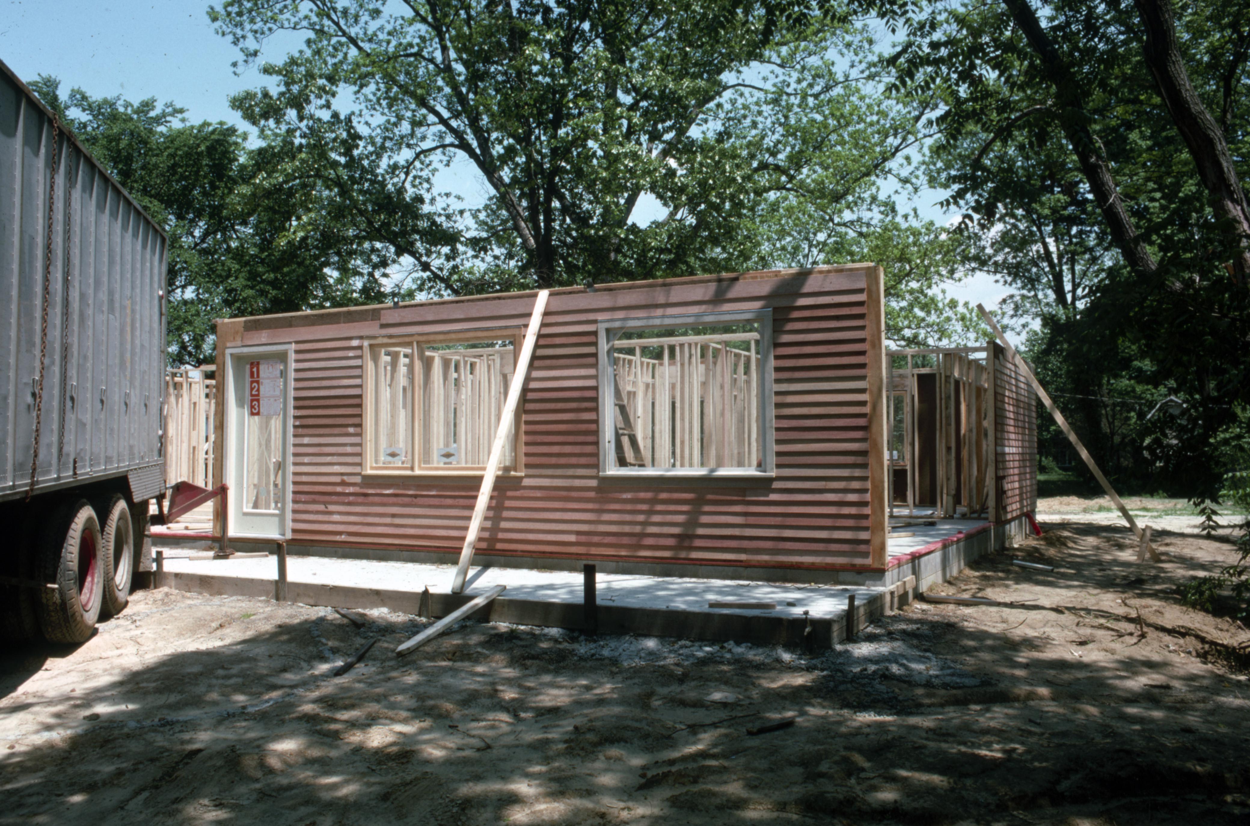Lanark Development Collection: Construction of 820 Main Street New Harmony Indiana. Men working on the new construction.