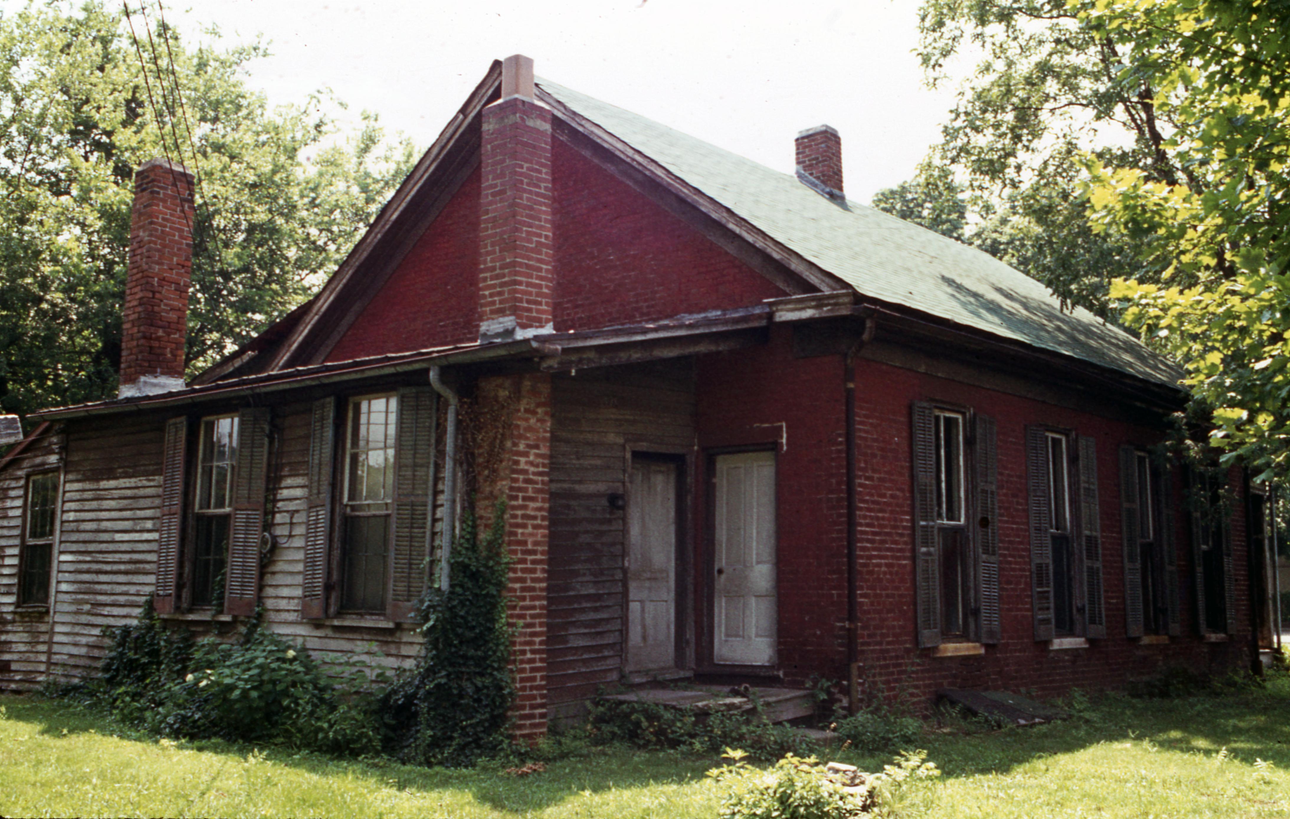 Patterson House: Located at 682 Arthur Street and built in 1850. This is a view of the northwest corner of the house. This addition to the house was demolished and a new addition built in its place through the renovations and is still present as of 2021, though both chimneys are now gone. The west side of the house faces Arthur Street.