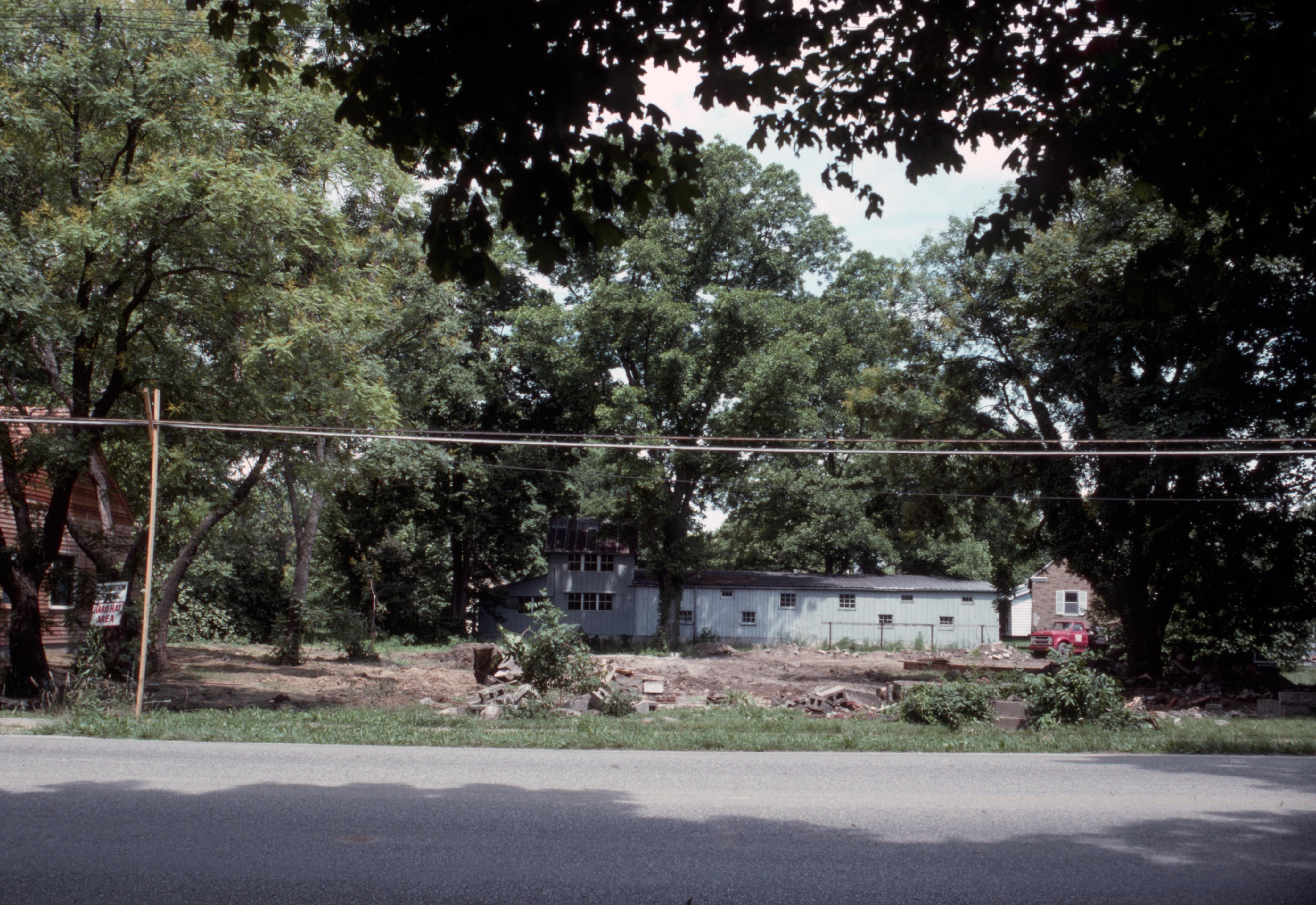 Barrett House Move: This the gray Barrett House site after being moved.