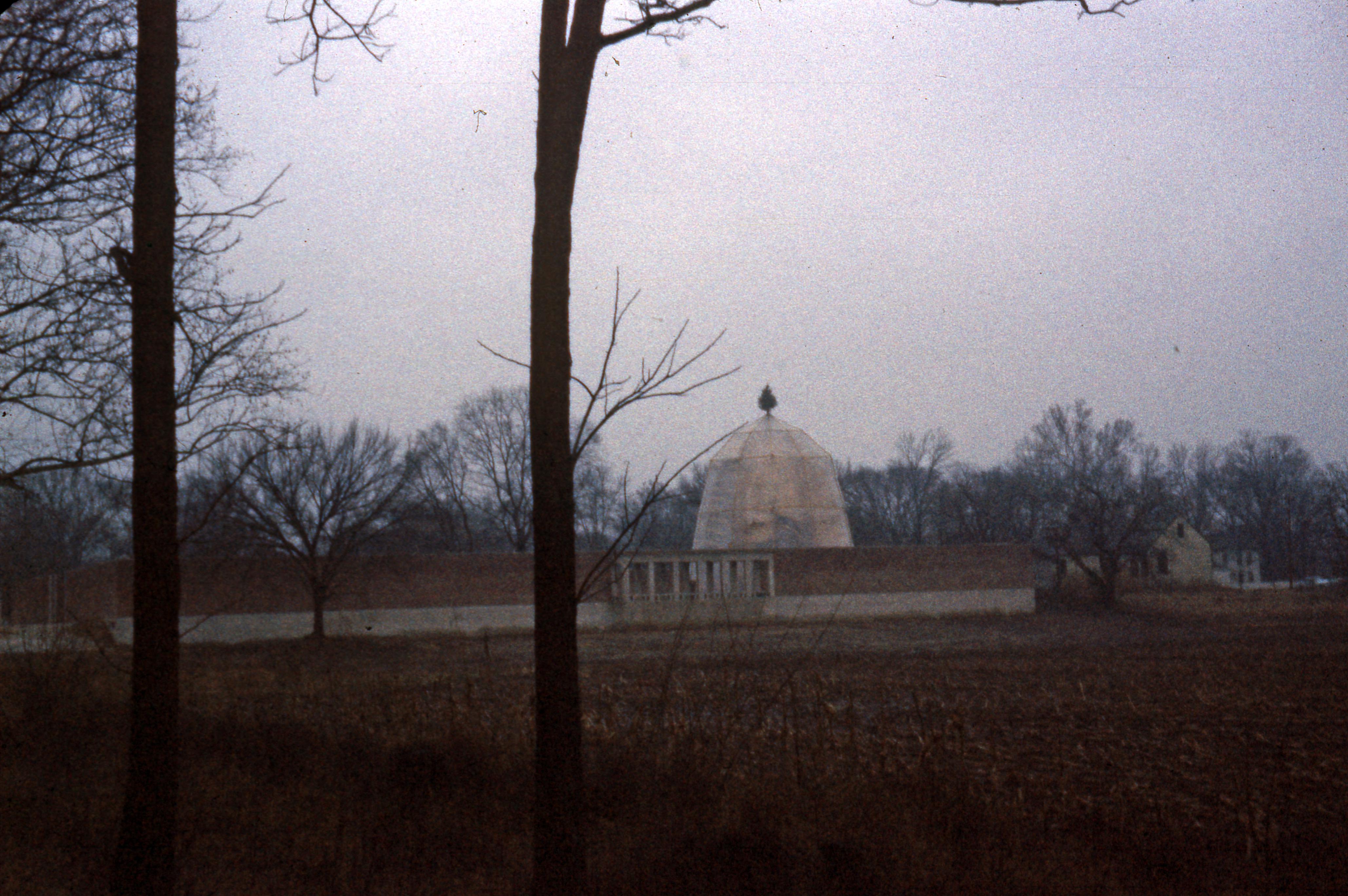 The grounds of the Roofless Church. The Roofless Church is located at 420 and was commissioned by the late Jane Blaffer Owen and built by architect Philip Johnson. The inter-faith church was dedicated in 1960 and is open to the public. This image is part of The Lois Muller Collection which is part of the Historic New Harmony Slide Collection.