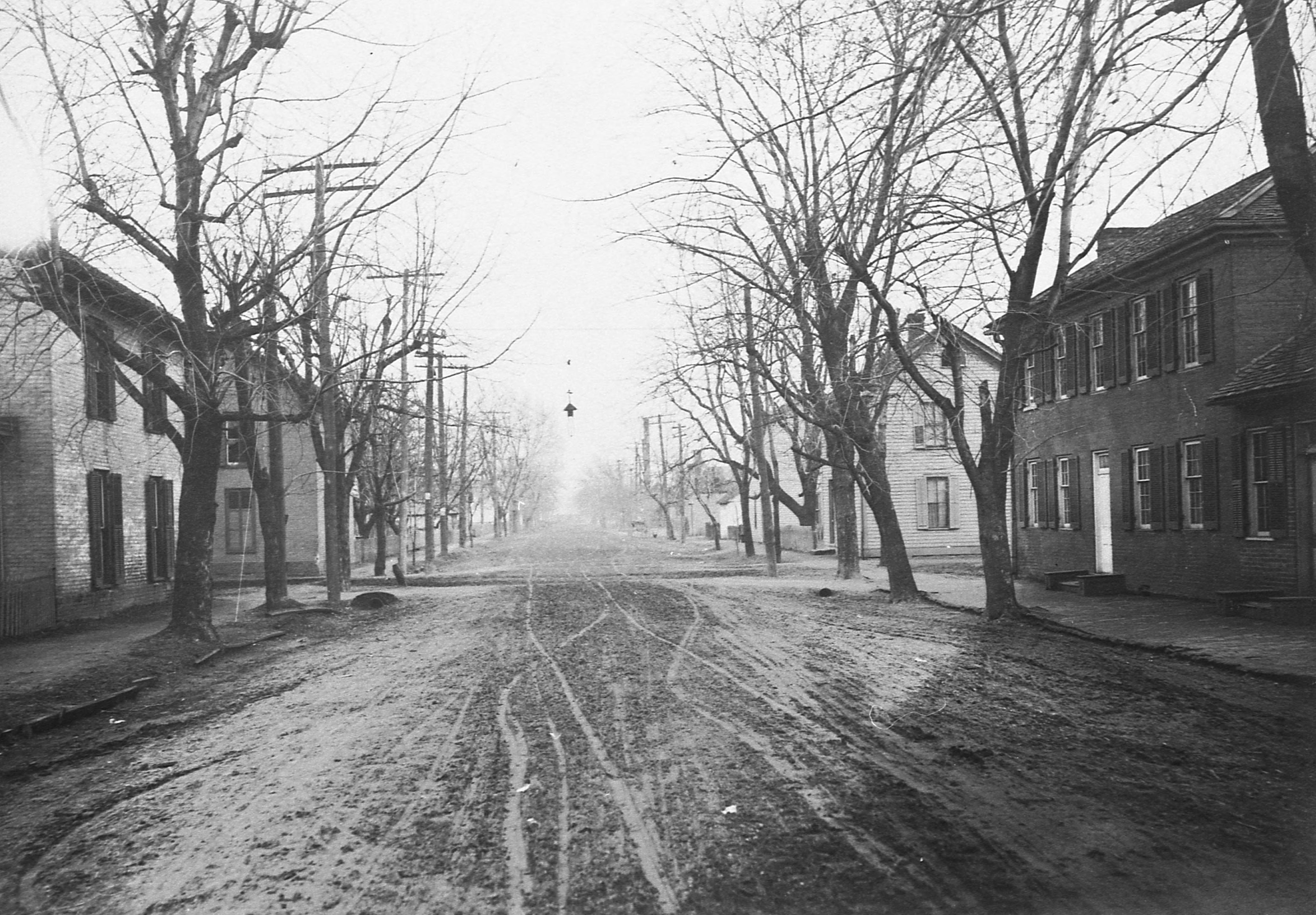 Transparencies and Negatives Collection: Historic photographs. This is an early photo of Wiley's Corner, the corner of Tavern and Brewery Streets. Note the early hanging street light above the intersection.
