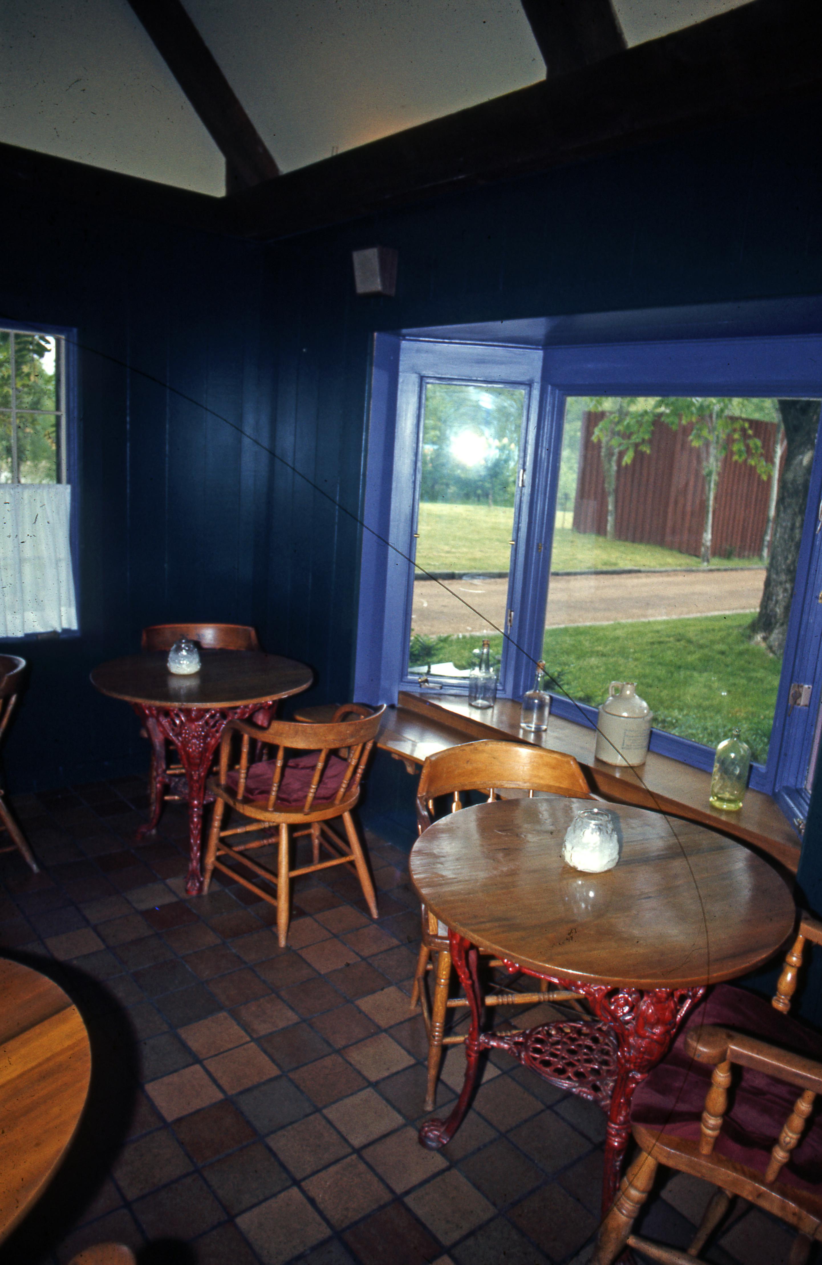 The Red Geranium Restaurant located at 504. The Red Geranium Restaurant is owned by Red Geranium Enterprises. This image is part of The Lois Muller Collection which is part of the Historic New Harmony Slide Collection.