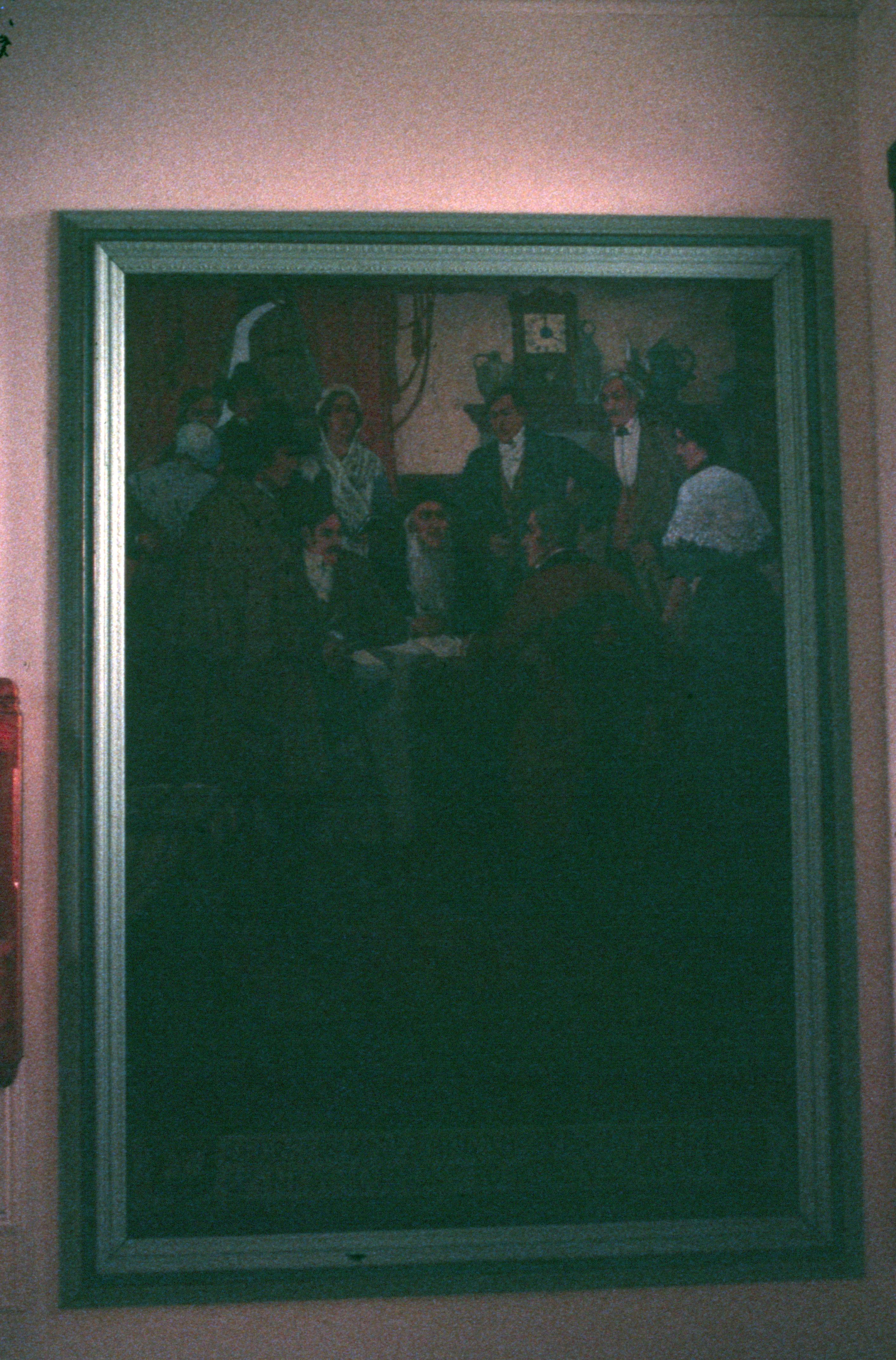 Deed Signing Portrait: This photo shows the portrait commemorating George Rapp signing the deed of New Harmony over to Robert Owen.