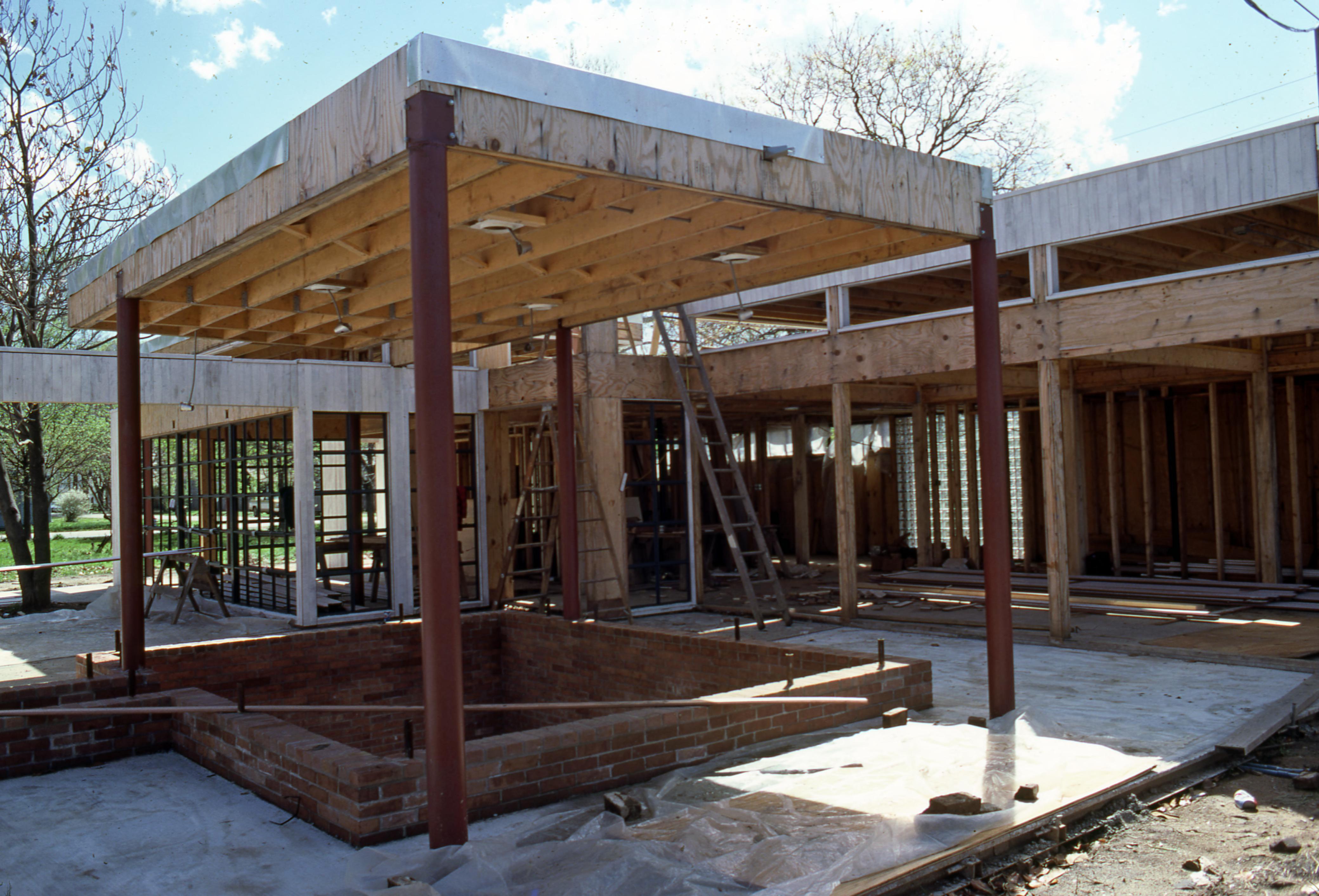 Construction of the Sarah Campbell Blaffer Potter�s Cabin. The cabin was constructed by Jane Blaffer Owen in honor of her mother, Sarah Campbell Blaffer. The cabin is located at 402.