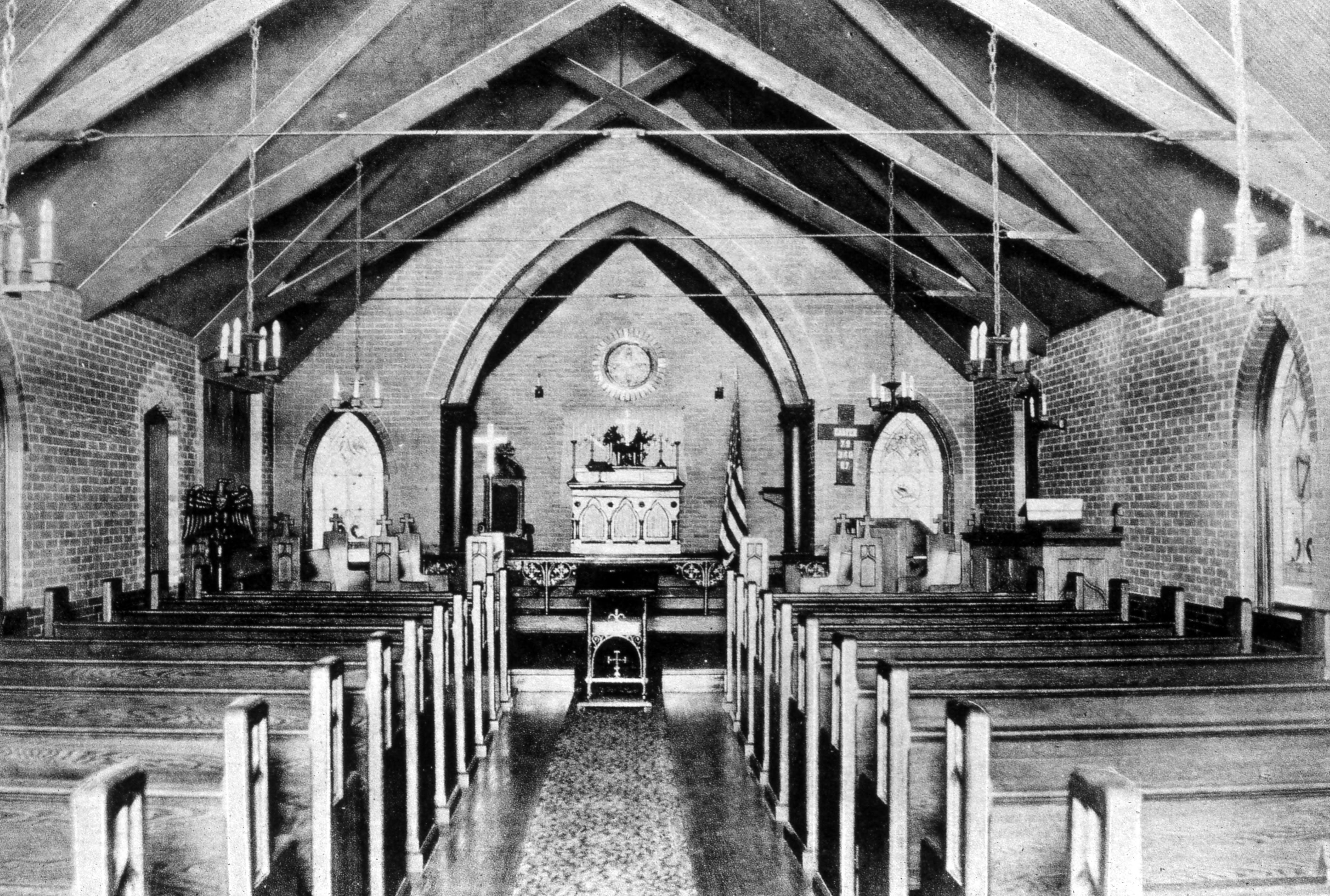 St. Stephen's Church: The church was first organized in 1841 and in 1843 the west wing of the old Rappite church was given for use by the Episcopal�s by Alexander and Anne Maclure. At this time the old burial ground was also given to the church, which was bought back by the Rappites in 1846. Then in 1850 the Episcopal�s sold the west wing of the old Rappite Church for $1000 and in 1854 St. Stephen�s Church was constructed, the North Street location where the Lenz House now resides.1888 saw the construction of a new belfry add to the church to accommodate the new bell. In 1911 the new church was built, and an addition was made to it in 1927. The church is still present as of 2022. This photo shows the inside of the church.