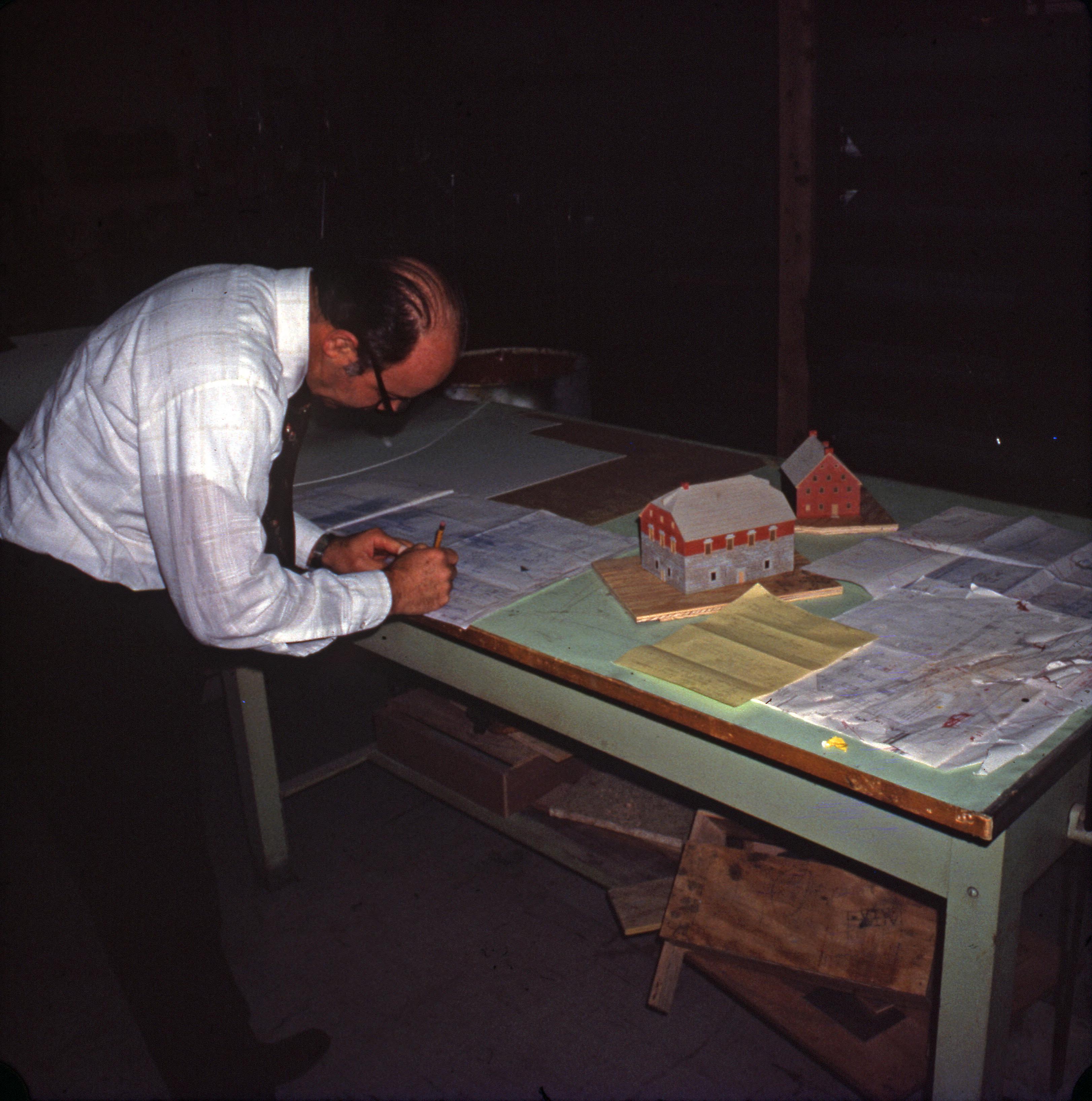 The town model being used to film scenes for the New Harmony Experience which is an orientation film shown at The Atheneum/Visitor�s Center. The film was produced by Historic New Harmony, Inc. and was shot in various locations around town.
