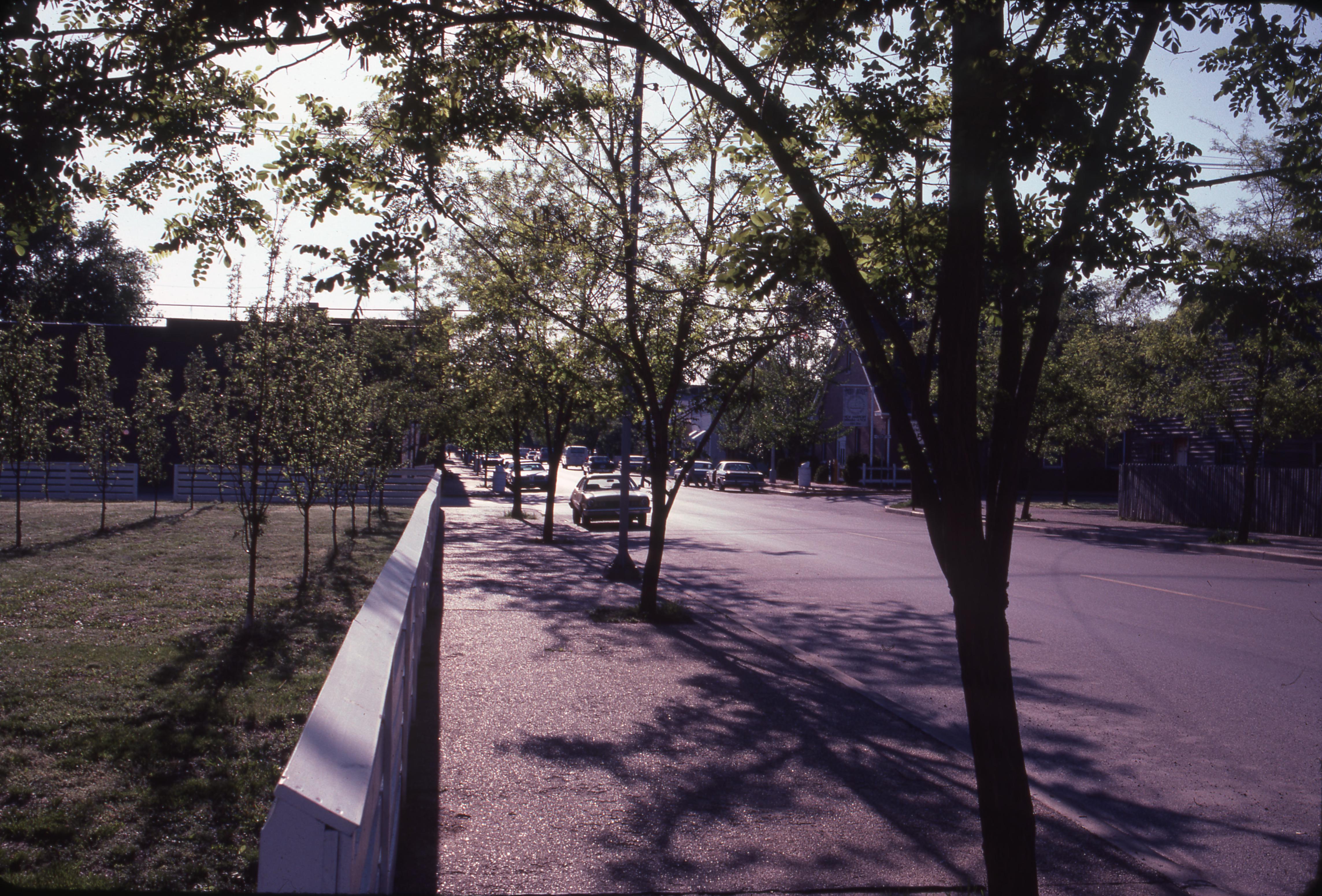 New Harmony Sidewalks: This photo shows the sidewalk and fence in front of the Beal House and 1850s Doctors Office/ Kemmerling House.
