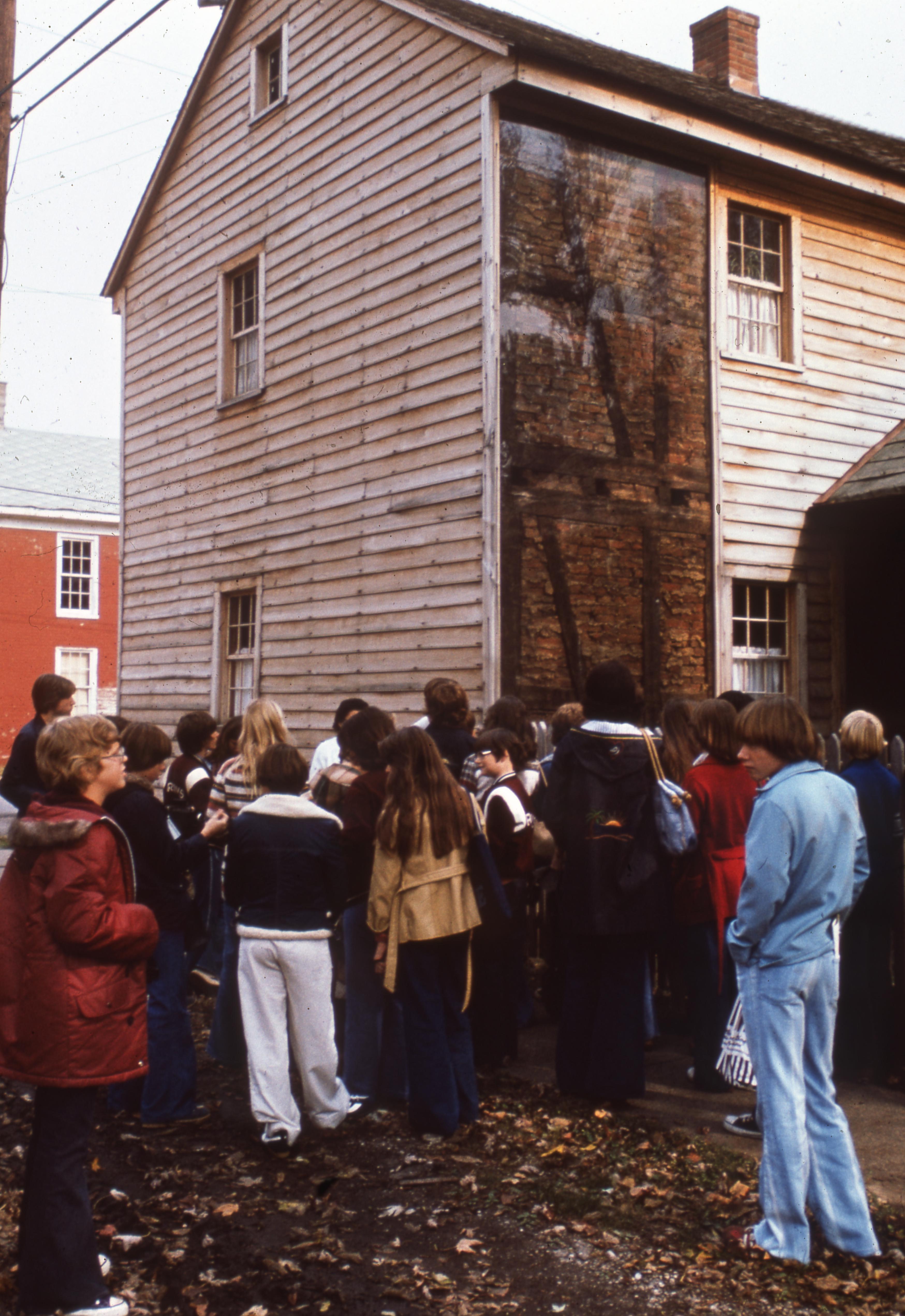 Autrieth House: This house is located at 605 Tavern Street and was constructed in 1855. A group of visitors are looking at the brick filled timber frame of the original 1855 construction on the southwest corner of the house.