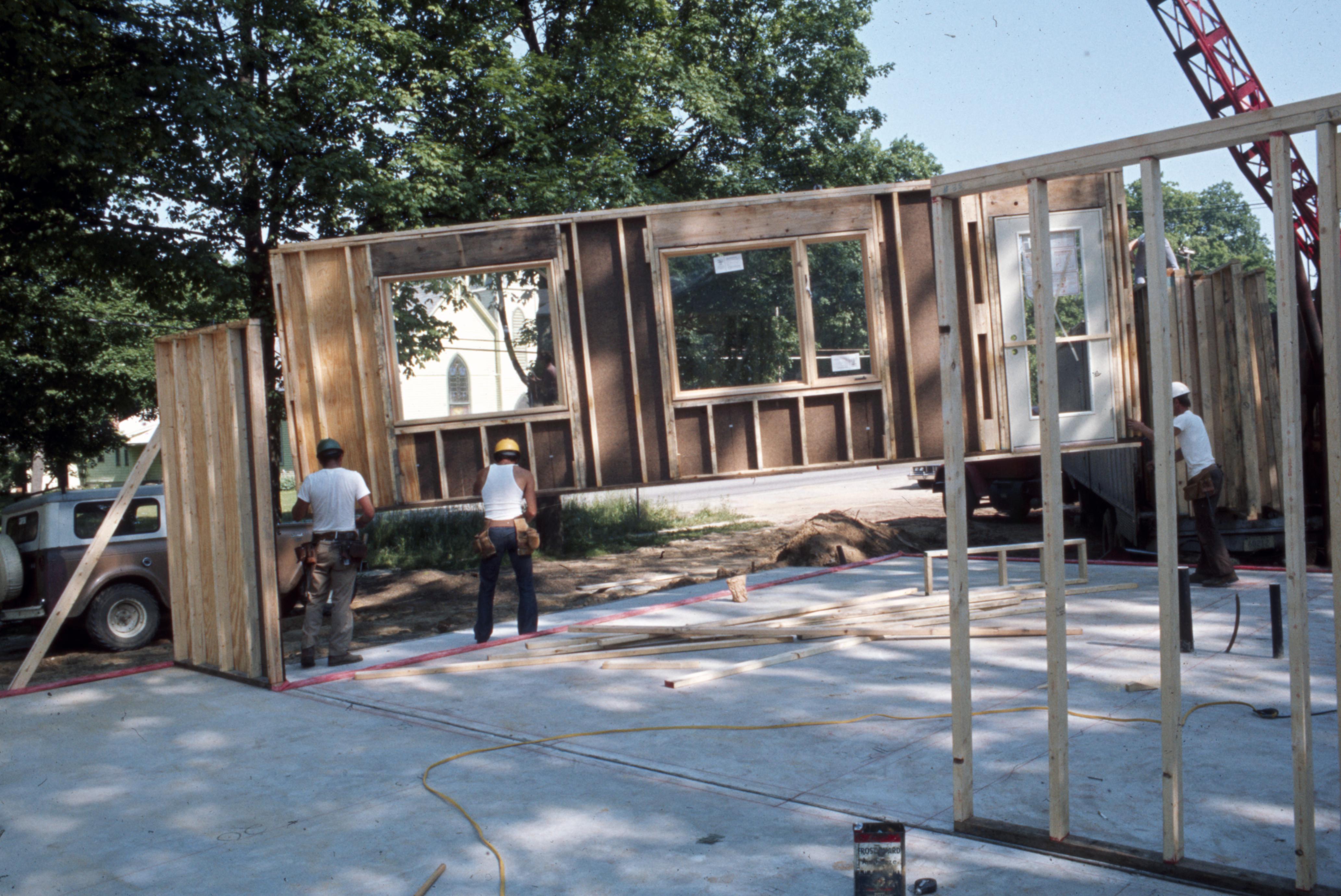Lanark Development Collection: Construction of 820 Main Street New Harmony Indiana. Men working on the construction of the new building.
