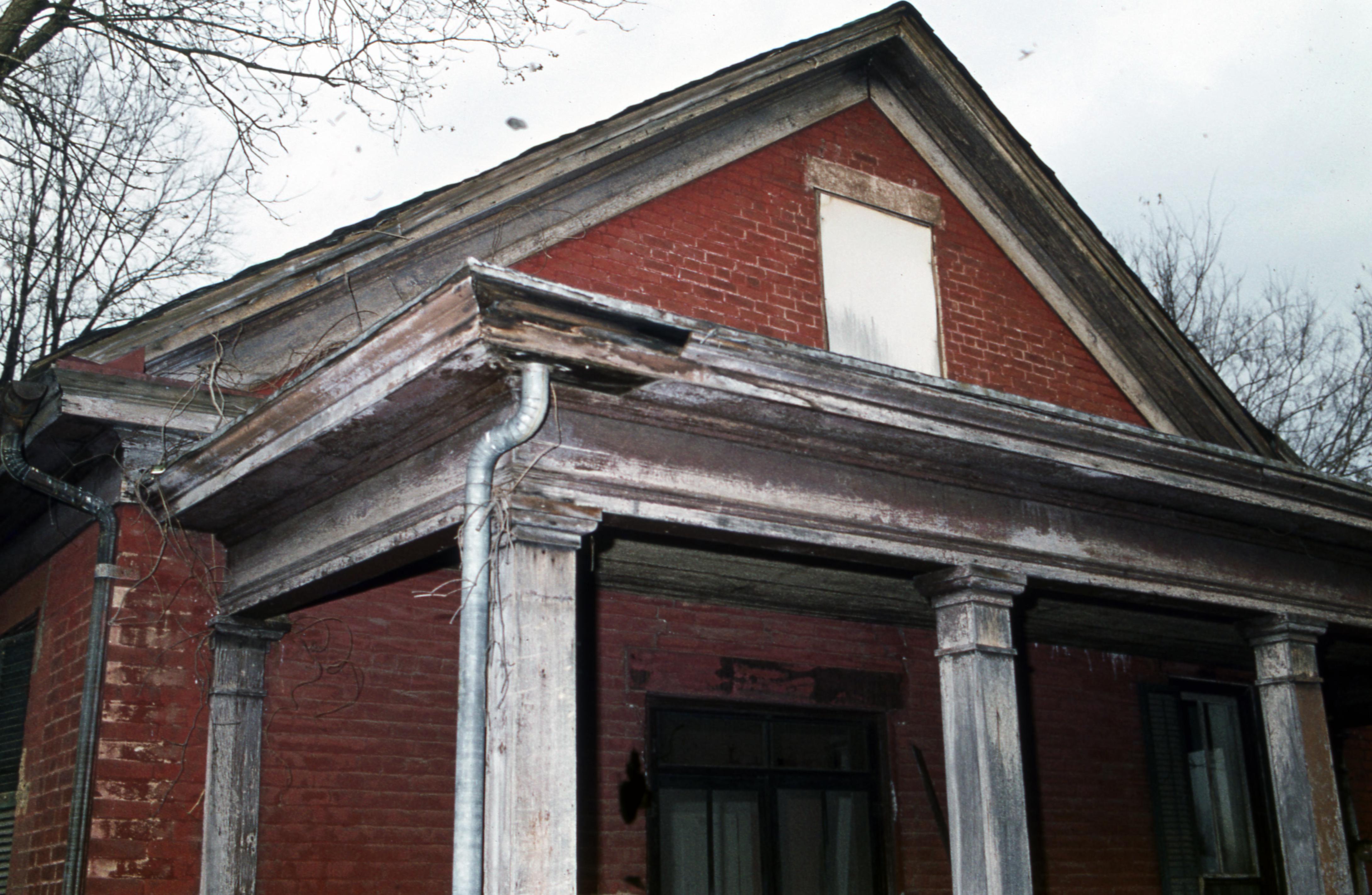 Patterson House: Located at 682 Arthur Street and built in 1850. This photo shows the southwest corner of the front porch, which faces Steam Mill Street, before the porch was demolished.