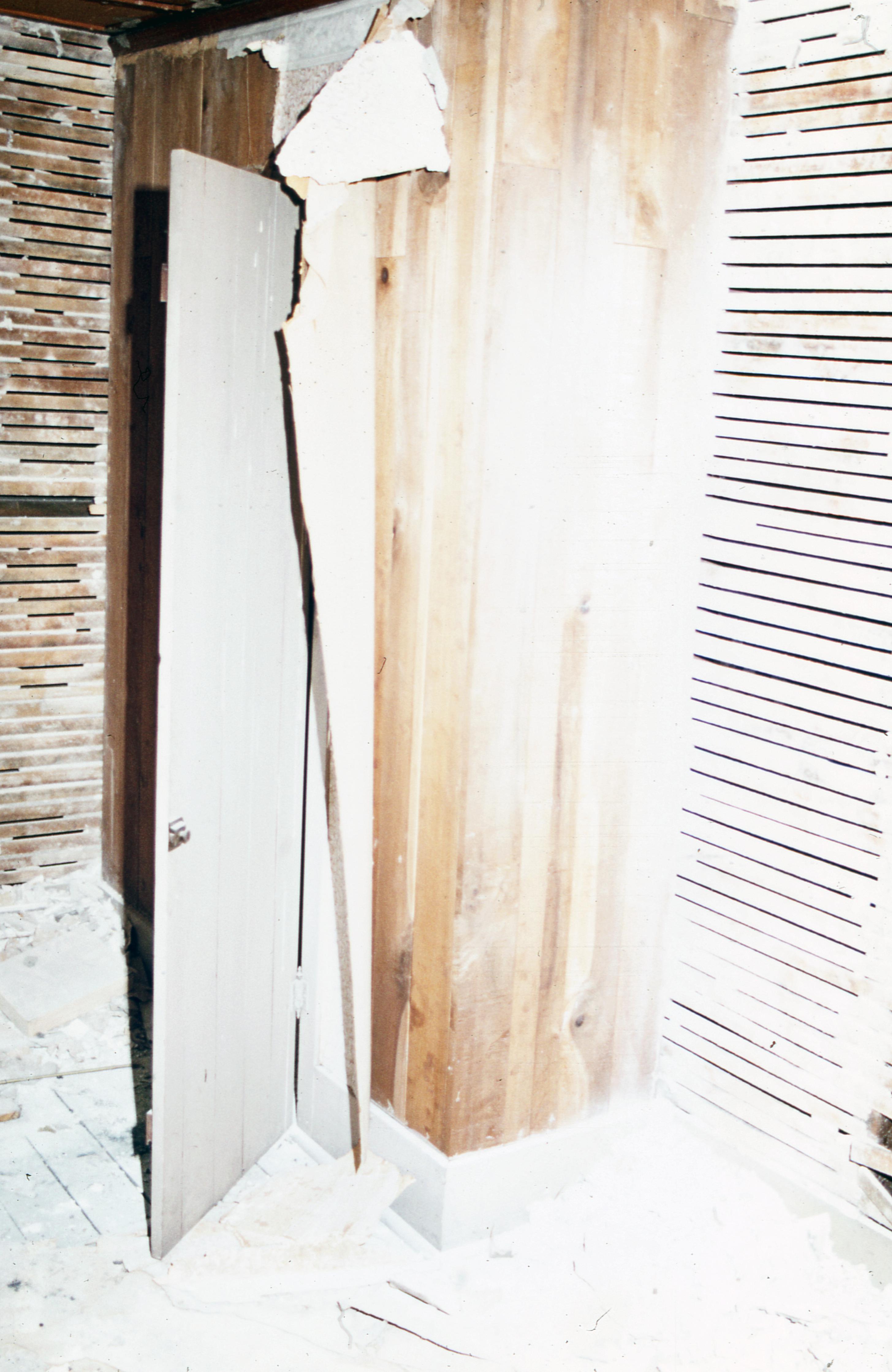 Rhodes House: This house is located at 611 Arthur Street and was present by at least 1907. The Rhodes House had sat abandoned for many years before restoration work was undertaken. This photo shows the walls which have been stripped back to the original laths and studs.