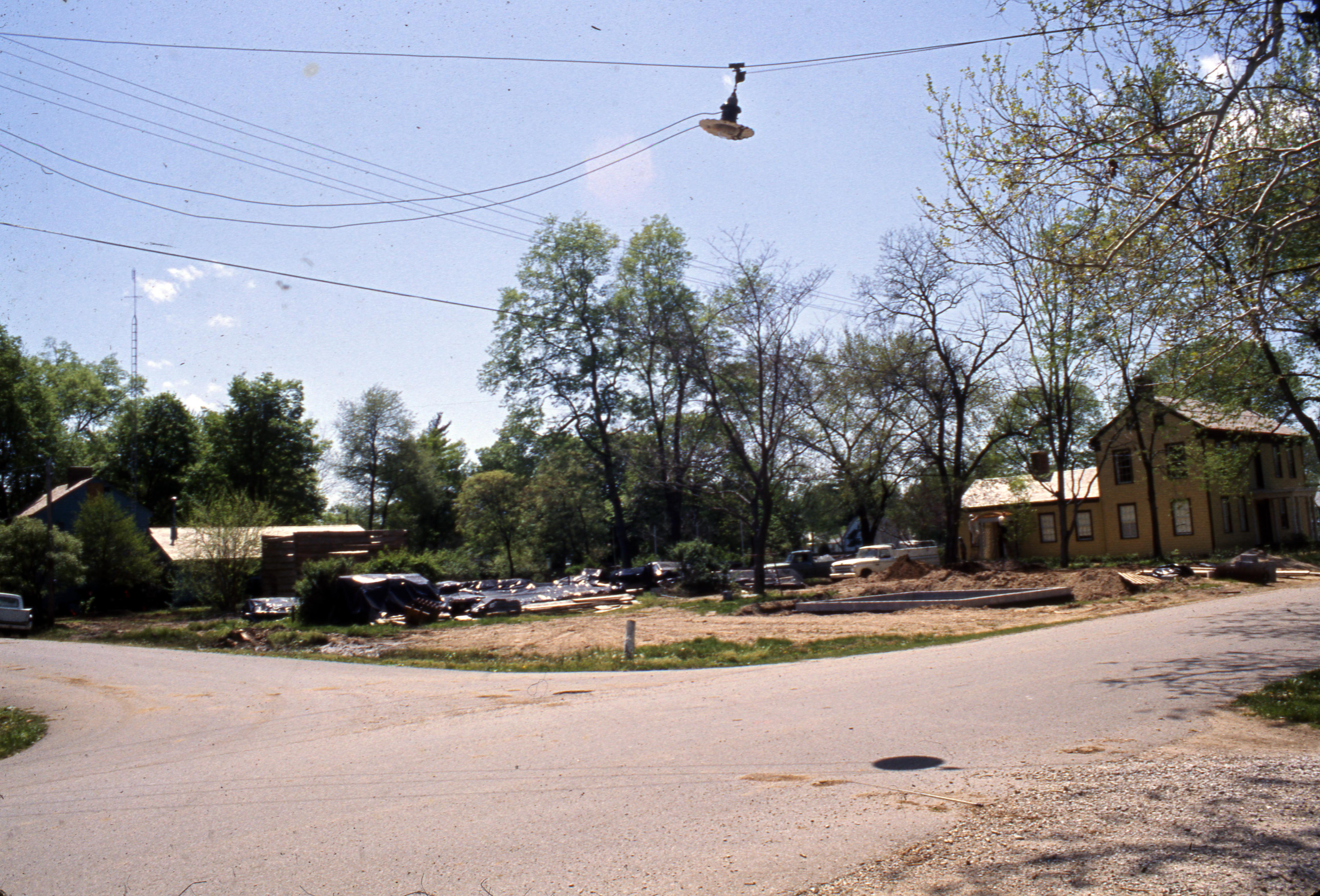 Reconstruction of the West Street Log cabins at 301 West Street, New Harmony, Indiana. The logs that were used to reconstruct the West Street Log cabins came from the John Spencer log house in Crossville, Illinois.