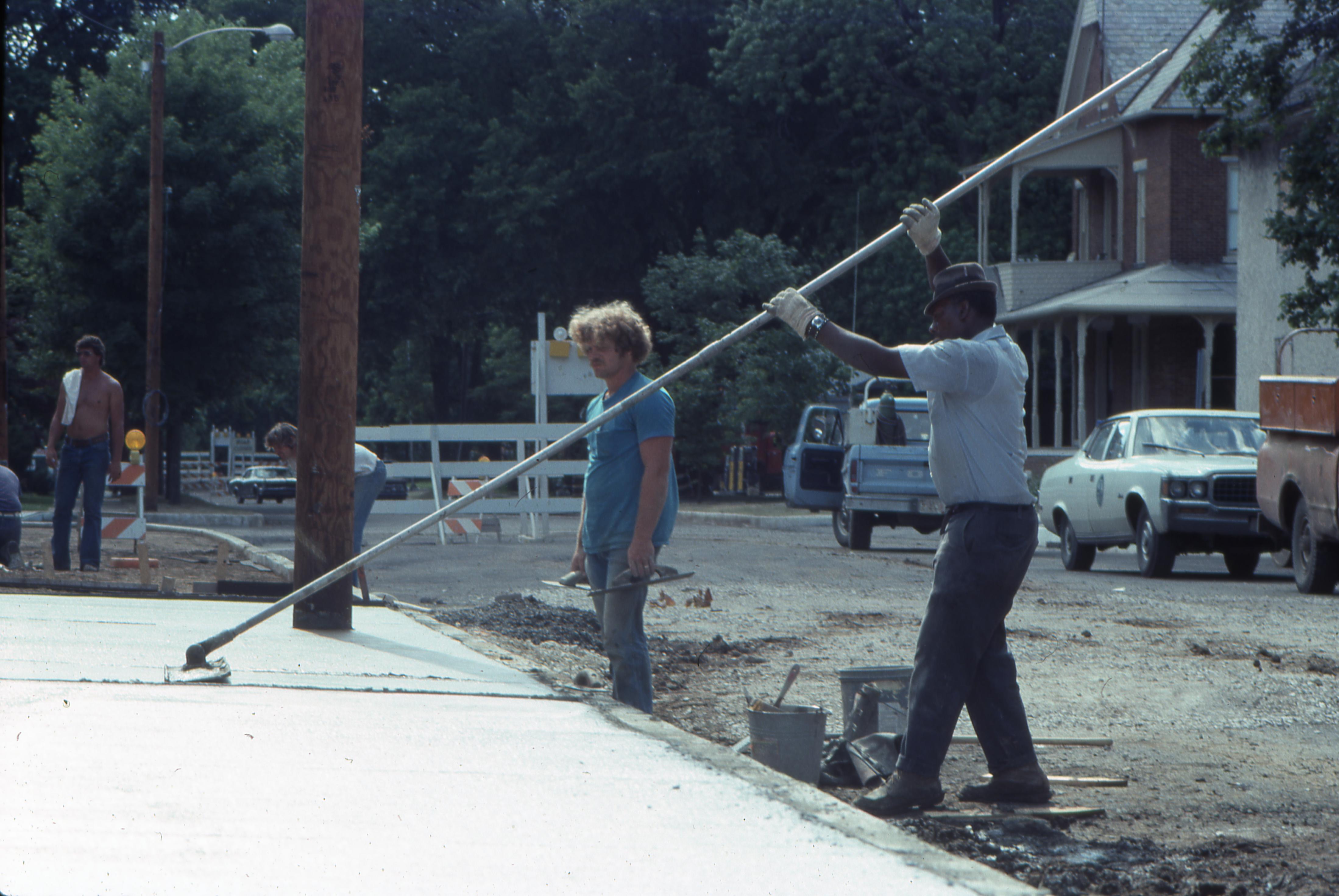 Streets: Church Street this is a new curb and sidewalk being made in front of the old New Harmony School.