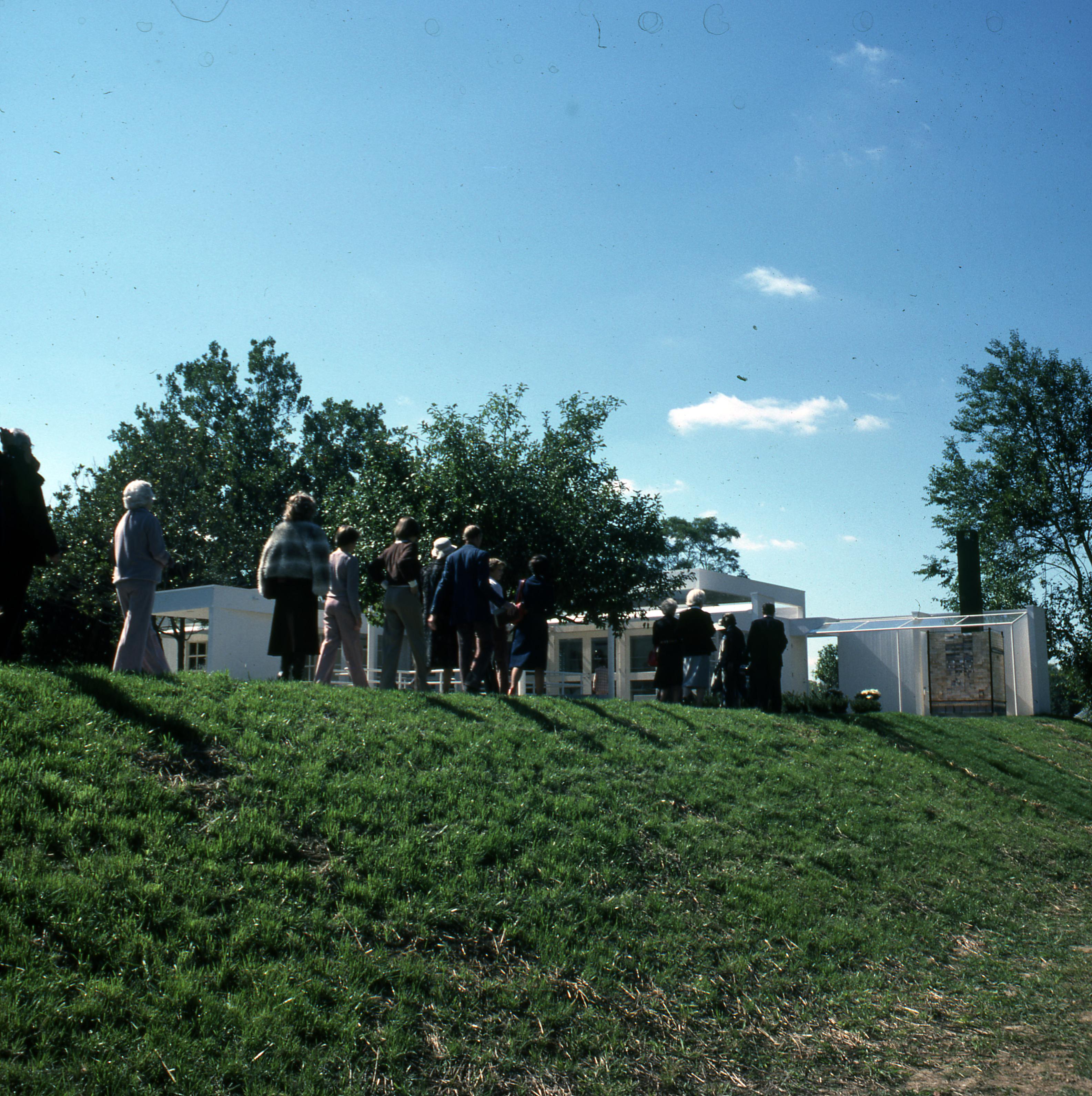 Dedication of the Sarah Campbell Blaffer Potter�s Cabin. The cabin was constructed by Jane Blaffer Owen in honor of her mother, Sarah Campbell Blaffer. The cabin is located at 402.