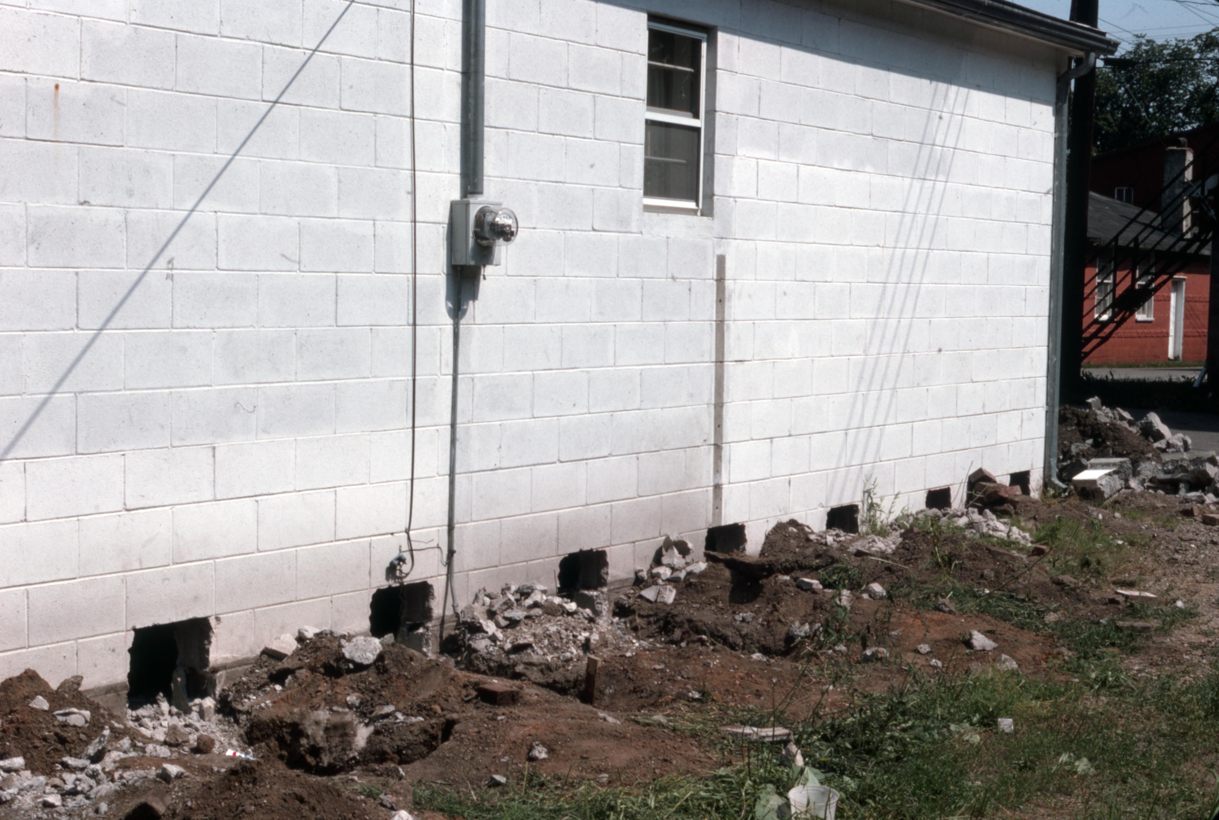 Structure moved from Town Map Block 5 E/N, somewhere behind 511 Tavern Street, towed east down Tavern Street, to South on East Street where it was settled on south east corner plat at East and Steammill Streets. Elmer Buchta Trucking were the movers. This building is no longer present as of 2020. The holes in the side of the house are where the steel I beams will be placed for lifting and moving the building.